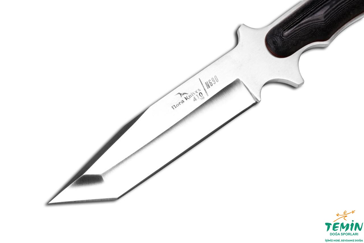 Bora Bıçakları olarak, ürünlerimizde A.I.S.I’nin (Amerikan Demir ve Çelik Sanayicileri) ve TSEK’nun av bıçağı üretiminde norm olarak kabul ettiği 440-A, 440-B, 440-C, N690, N695 standartlarına uygun paslanmaz çelik kullanmaktayız. Kullandığımız bu çeliğin sertlik derecesi, dünyada A sınıfı çelik sertlik derecesi olarak kabul edilmekte ve 57-60 RHC (Rockwell) arasında değişmektedir.