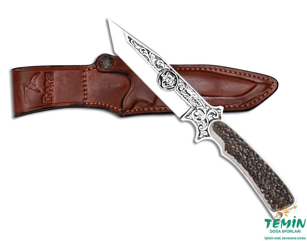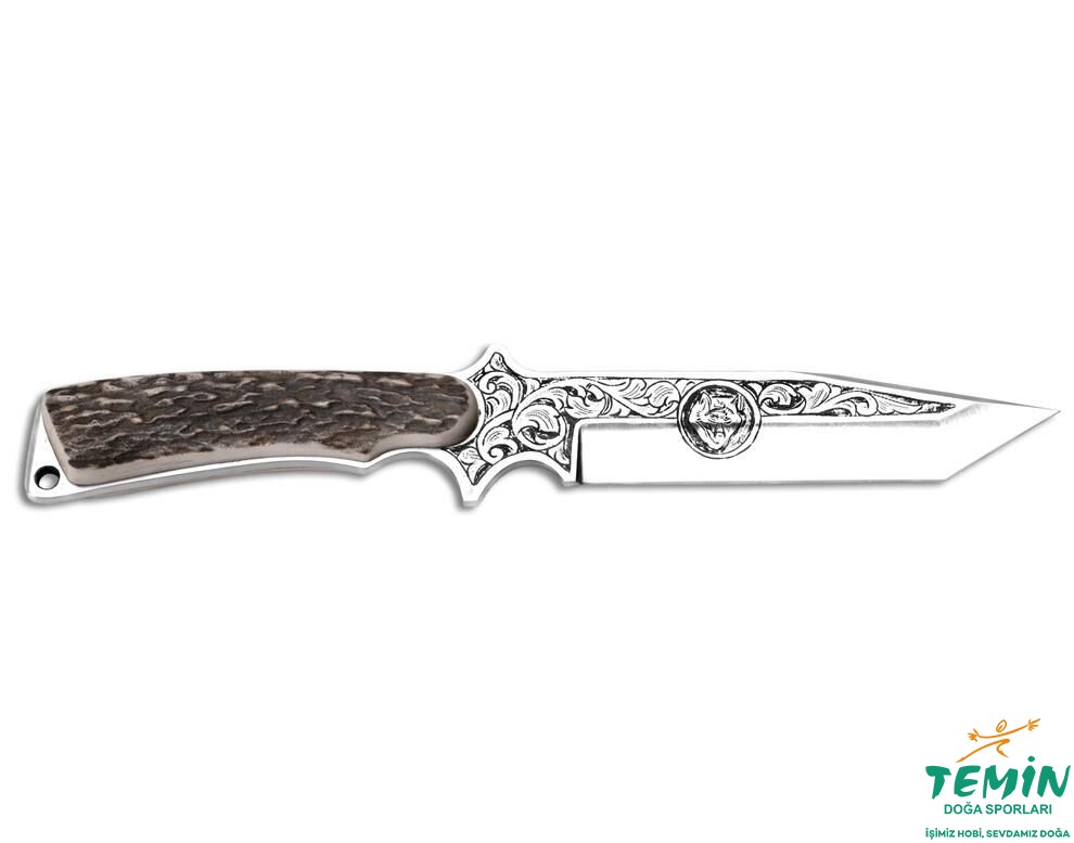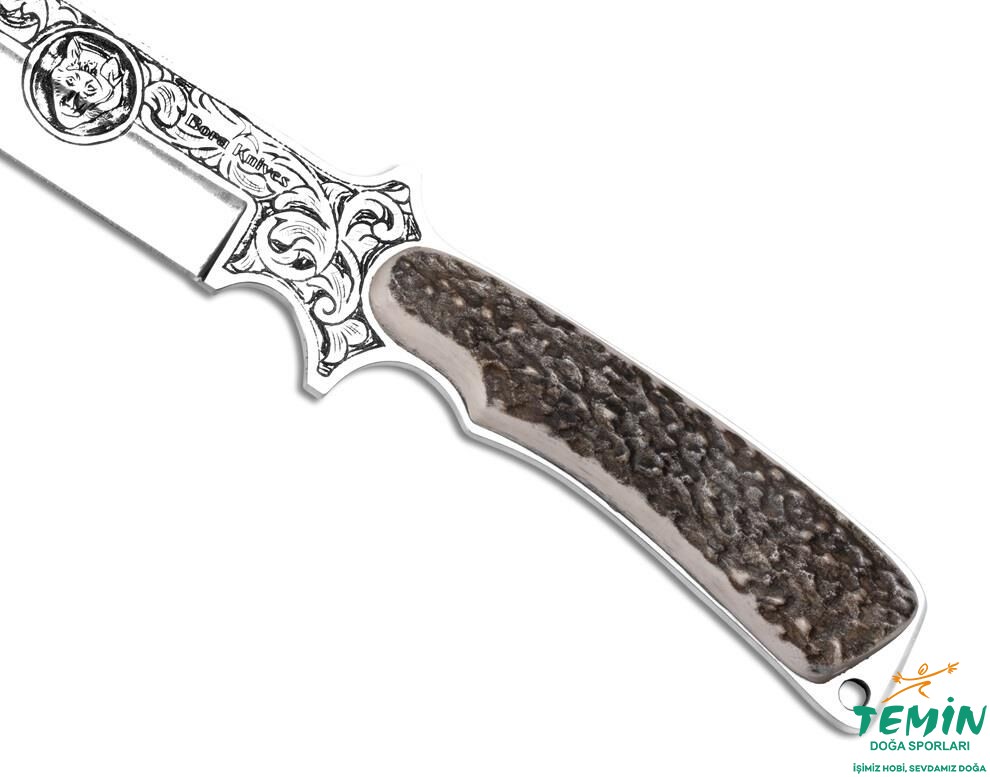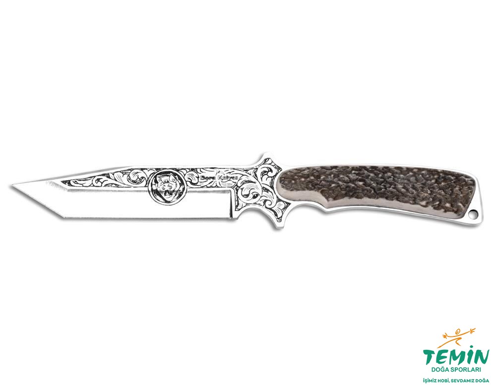 Bıçağın sap malzemesi olarak ''Geyik Boynuzu'' kullanılmıştır. Her sene üreme döneminden sonra geyiklerin boynuzları düşer ve yenisi çıkar. Orman Bakanlığımızdan sınırlı sayıda satın aldığımız geyik boynuzu, güçlü, sert ve dayanıklı yapıdadır. Doğal yapısı gereği her bıçak üzerinde farklı desen ve doku oluşturmaktadır. Bu özelliği ile son derece iyi kavrama imkânı sunan geyik boynuzu, görselliğe önem veren kullanıcılar tarafından da tercih edilmektedir.