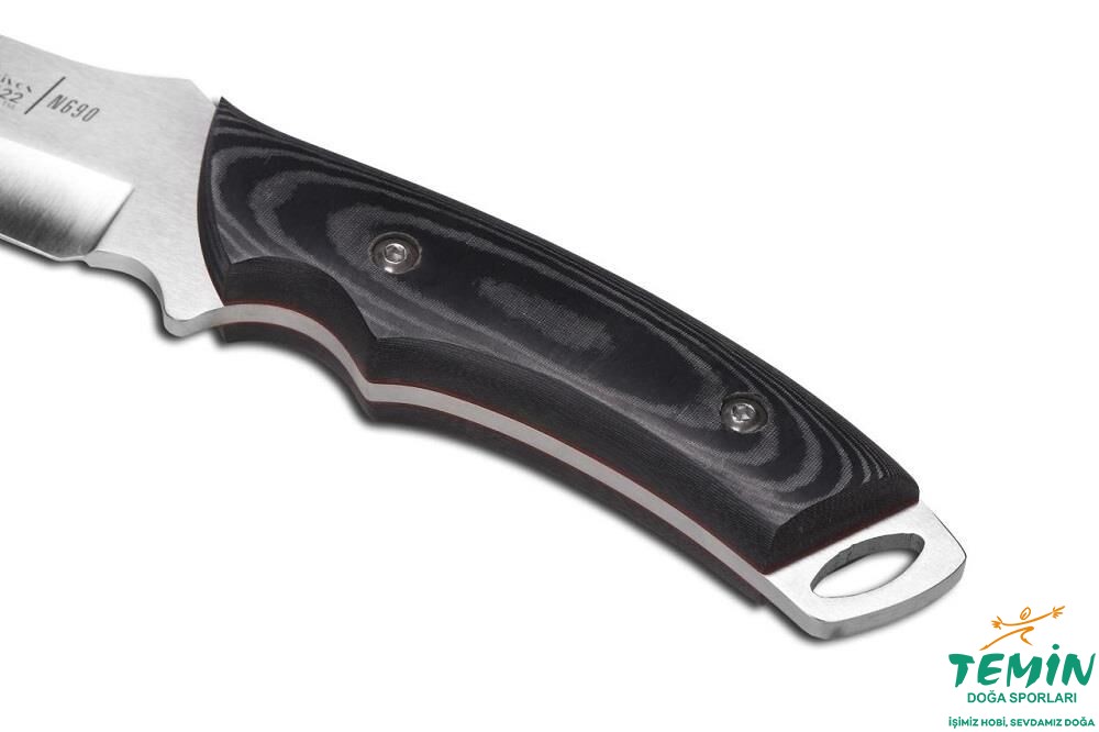 ‘’M’’ mikartayı, ‘’A’’ N690’ı temsil etmektedir. Dolayısıyla, sap malzemesi olarak siyah-gri renkli ve kendinden astarlı (kırmızı), keten mikarta (linen micarta) ve bıçak çeliği olarak N690 kullanılmıştır. Bıçağın ısıl işlemi, çeliği üreten firma tarafından yapılmıştır.