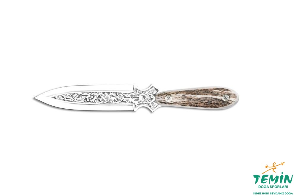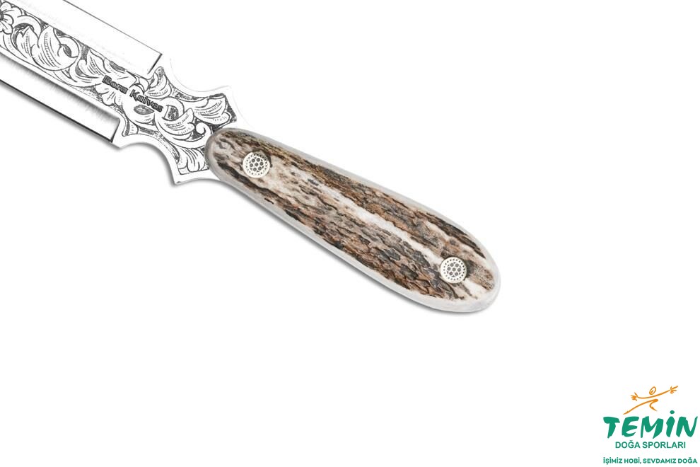 Zarf açacağının sap malzemesi olarak ''Geyik Boynuzu'' kullanılmıştır. Her sene üreme döneminden sonra geyiklerin boynuzları düşer ve yenisi çıkar. Orman Bakanlığımızdan sınırlı sayıda satın aldığımız geyik boynuzu, güçlü, sert ve dayanıklı yapıdadır. Doğal yapısı gereği her bıçak üzerinde farklı desen ve doku oluşturmaktadır. Bu özelliği ile son derece iyi kavrama imkânı sunan geyik boynuzu, görselliğe önem veren kullanıcılar tarafından da tercih edilmektedir.
