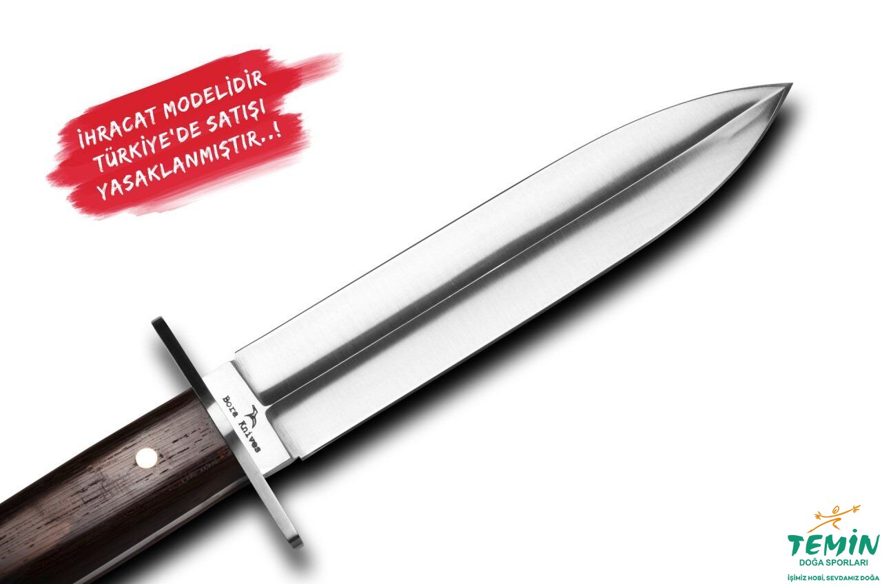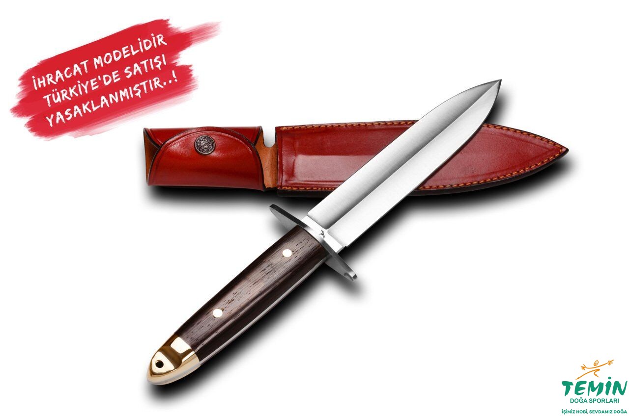 Firmamızın kuruluşundan itibaren birlikte çalıştığımız, atölye şefimiz Erdal Tabak tarafından tasarlanmış, özellikle yurt dışına en çok satmış olduğumuz modeldir. Birçok film ve dizilerde de kullanılan bu modelimiz, 440-B den yapılan çift taraflı gard sayesinde kullanımda güvenlik sağlamaktadır. Çift taraflı keskinlik sağlamasından dolayı askeri birliklerin de tercih ettiği bir modelimizdir.