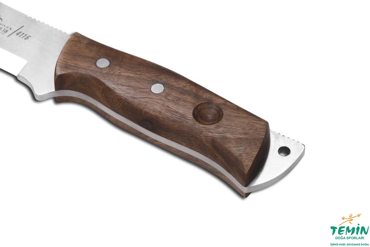 Bıçağın ceviz ağacından sap malzemesi bulunmaktadır. Bıçak kabzası için uygun olan doğal malzemeler içinde yer alan ceviz, görsel ve dokunsal zenginliğiyle yüzyıllardır -mobilyadan döşemeye kadar- hayatımızdadır. Kabzalarda olduğu gibi dipçik yapımında da tercih edilen ceviz, takım oluşturmak için de aranan ve hem yaygın hem saygın olmayı başarabilen ender malzemelerdendir.