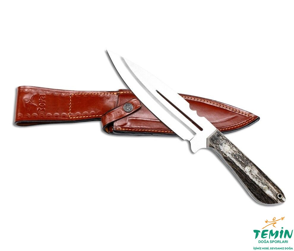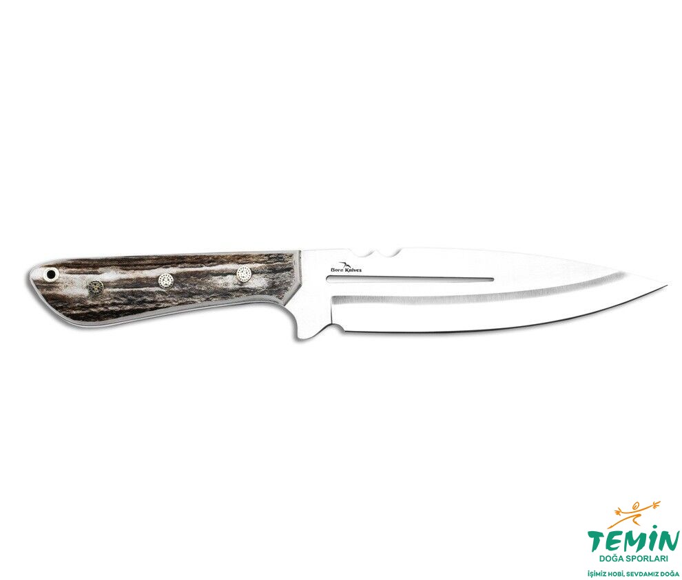 Sapında malzeme olarak Geyik Boynuzu kullanılmaktadır. Her sene üreme döneminden sonra geyiklerin boynuzları düşer, yerine yenisi çıkar. Sınırlı ölçülerde Orman Bakanlığımızdan satın alabildiğimiz, geyik boynuzu sert yapısı ile birlikte dayanıklılığında güçlü olmasından dolayı özellikle bıçakta görselliğe önem veren kullanıcılar tarafından tercih edilmektedir. Doğal yapısı nedeniyle her bıçak üzerinde farklı bir görsellik oluşturmaktadır.