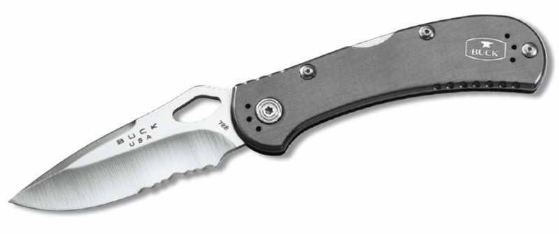 Buck 722 Spitfire Gri Alüminyum Saplı Testere Ağızlı Çakı