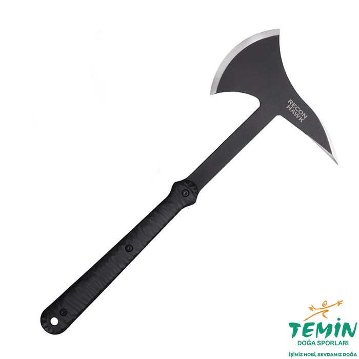 Dünyaca ünlü bıçak üreticisi Andrew Demko tarafından tasarlanan recon Hawk balta, tek parça süper sert karbon çelikten, tek parça olarak imal edilmiştir. Özellikle vahşi doğada etkili bir fırlatma aracı olarak kullanılabilir. Takıp çıkarması kolay ve pratik olan mafsallı kılıfı ile birlikte gelir.