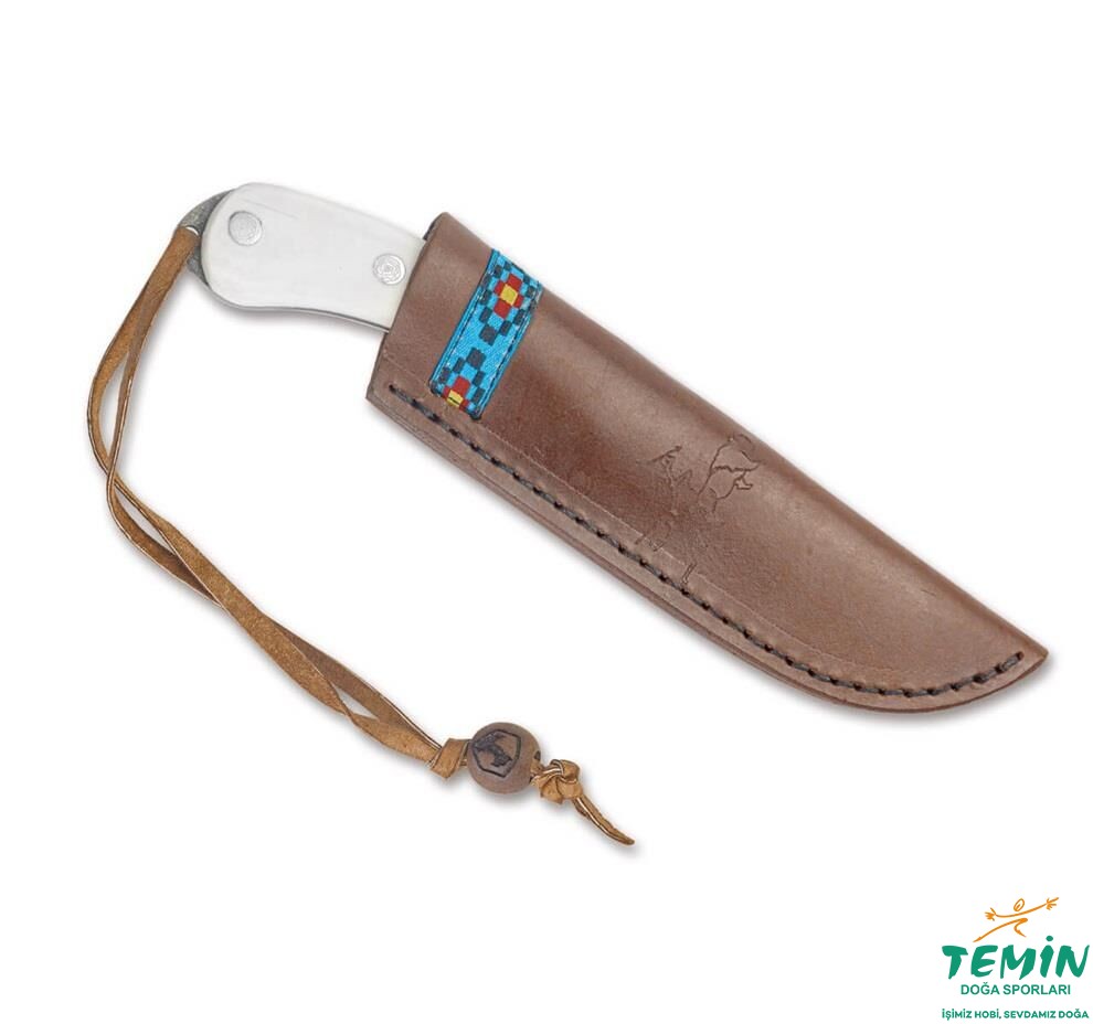 Condor'un Blue River bıçak serisi, yerli Arapaho halkının yaşadığı aynı adı taşıyan nehirden esinlenmiştir. Bu bıçak serisi, bu kabilenin savaşçı kültürünü ve olağanüstü avcılık becerilerini onurlandırmaktadır. Full tang bıçağın kusursuz tasarımı, Amerikan yerlilerinin anlamlı mücevherlerinden esinlenen turkuaz süslemeli beyaz micarta sapa sahiptir. Scandi taşlama ve iki tonlu kaplamaya sahip 1095 karbon çeliğinden yapılmış rustik drop-point ağız, bu kabilelerin atalarının geleneklerinde derin kökleri olan savaş ve avcılık ruhunu temsil eder. Av bıçağı yüksek kaliteli bir deri kılıfla birlikte verilir. Kordon deliği ve deri halkası vardır.