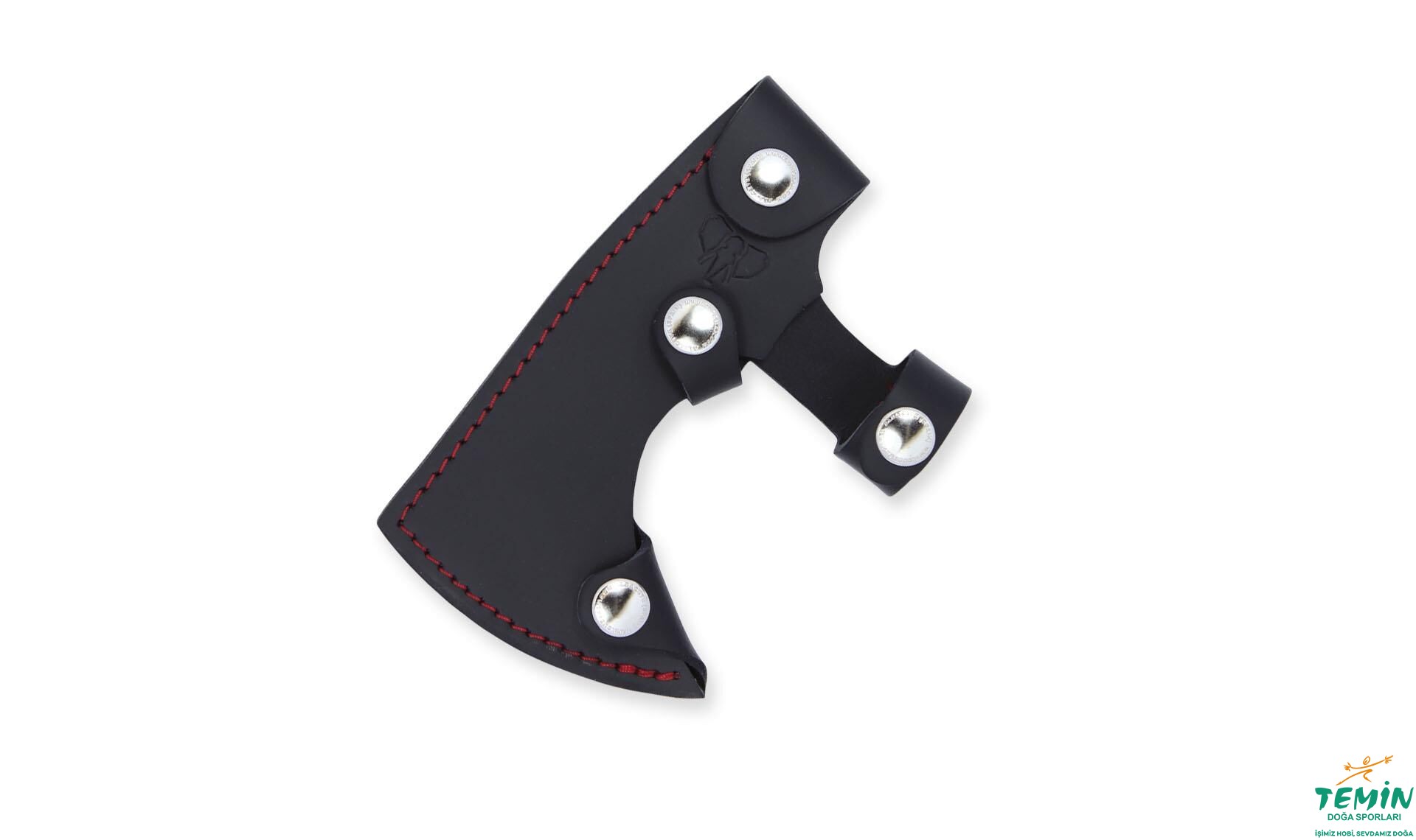 Balta, siyah renkteki deri kılıfıyla sunulmaktadır. Baltanın sabitlenmesini çok noktadan sağlayan güvenli kılıf üzerindeki kırmızı dikişler, mikarta astarıyla uyumludur.