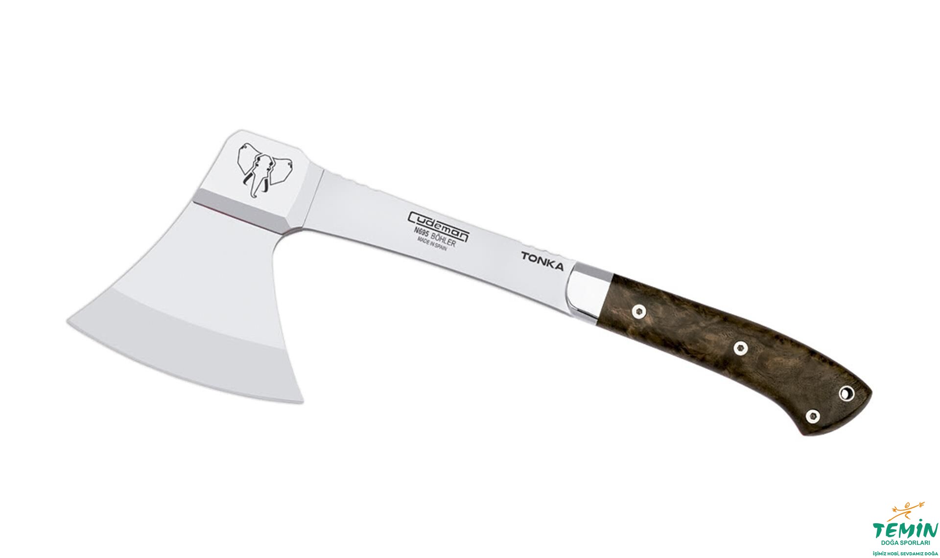 Avlarınızı parçalara ayırmak üzere imal edilmiş, 5 mm kalınlığındaki N695 çelikten oluşturulan yekpare bir baltadır. Toplam boyu 36 cm olan balta, 12 cm uzunluğunda kesici ağza sahiptir. Ağız içbükey (hollow grind) şekilde açılmıştır. Baş kısma, ağırlaşması ve baltanın daha rahat kullanılabilmesi için, 304 çelikten ilaveler yapılmıştır.