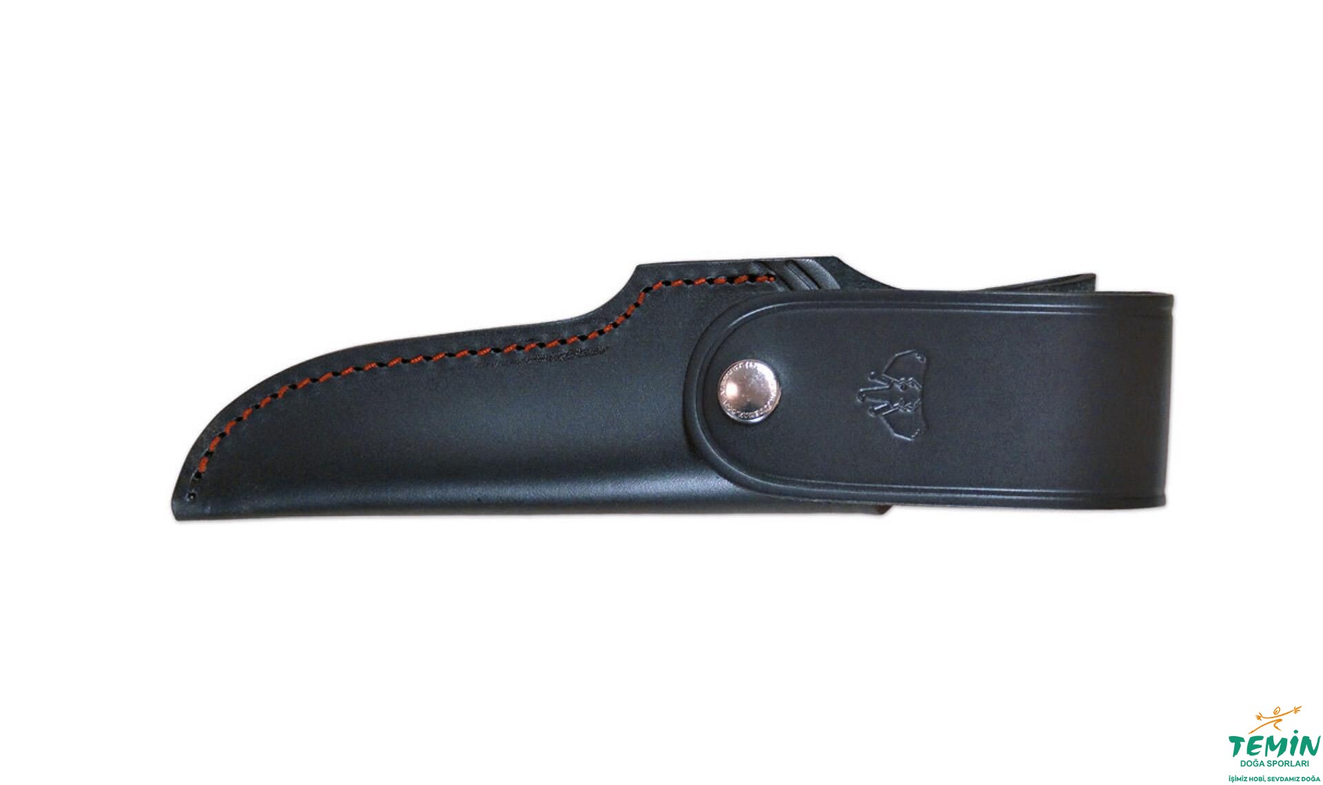Sapının dibine doğru, bir başka kordon deliği (lanyard hole) daha (Buraya bağlayacağınız ipi bileğinizden geçirerek elinizin namludan uzak kalmasını garanti altına alabilir veya bıçak elinizden kurtulsa bile sizden uzaklaşmamasını sağlayabilirsiniz.) açılan 255-M, kapaklı, siyah deri kılıfıyla sunulmaktadır. Kılıfın üzerindeki kırmızı dikişler, bıçağın astarıyla uyumludur.