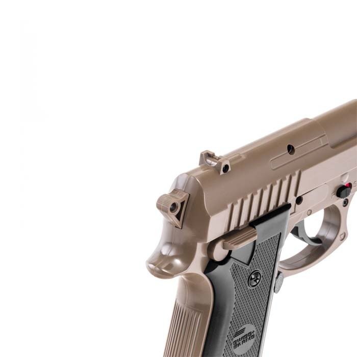 4,5 mm kalibre, 15 atış kapasiteli şarjör, 90 m/s hız ve raylı gövde yapısıyla Cybergun Swiss Arms PT92, blowbacksiz havalı tabanca arayanlar için dikkat çeken bir modeldir.