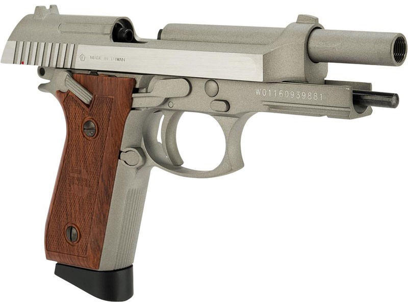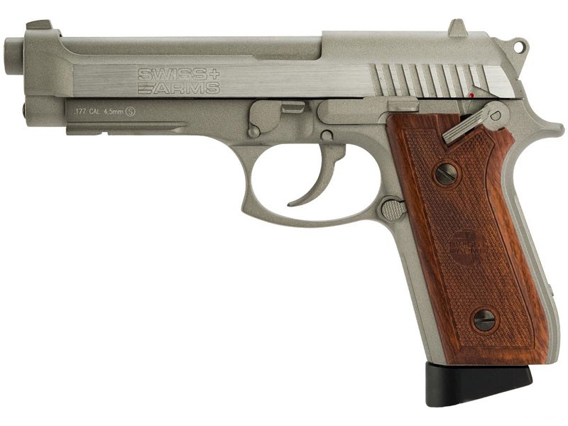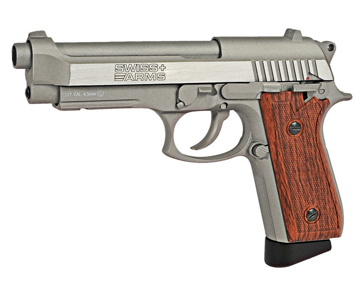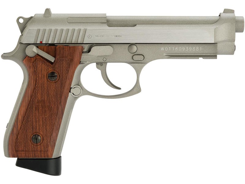 Swiss Arms SA92 Blowback 4,5mm havalı tabanca; 21 BB kapasiteli şarjörü, gerçekçi tepki hissi ve yarı emniyetli yapısıyla öne çıkan CO2’li bir modeldir.