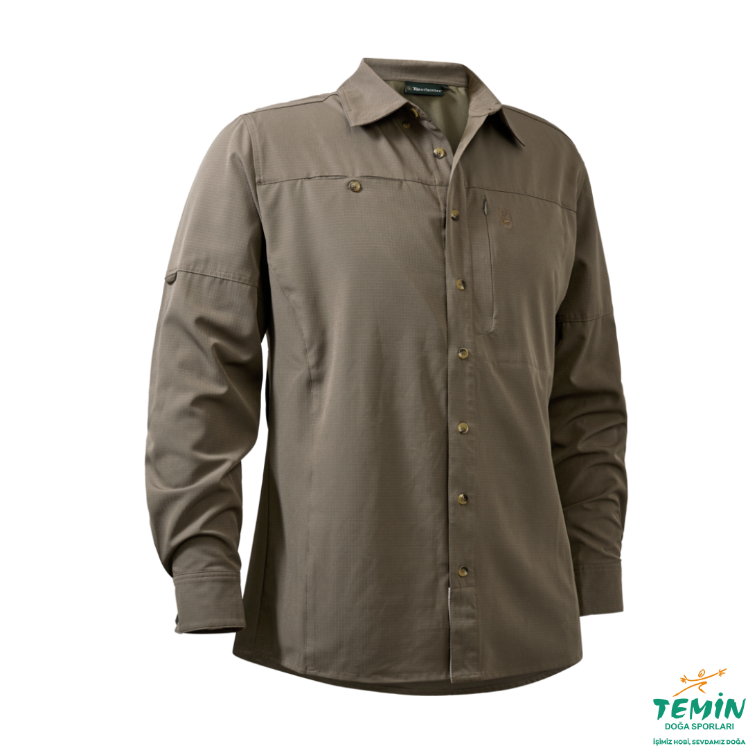 Yazın nefes alabilirlik ve konfor sunan Canopy gömlek, fileli bir havalandırma paneline sahiptir. Olağanüstü hafif, esnek, yırtılmaz malzemeden üretilen Canopy gömlek, konfor ve kısıtlanmamış hareket imkanı sunar. Pratiklik düşünülerek tasarlanan Canopy Gömlek, hareket halindeyken gözlük veya optik cihazlarınızı temizlemek için oldukça kullanışlı olan, düğmelerin arkasında, gömleğe monte halde bir temizleme bezine sahiptir. Sıcak havalarda akıllı bir giyim çözümü arayan avcılar ve açık hava maceracıları için havalandırmayı ve konforu önceliklendiren Canopy gömlek ile yaz sıcağında serin ve rahat kalın.