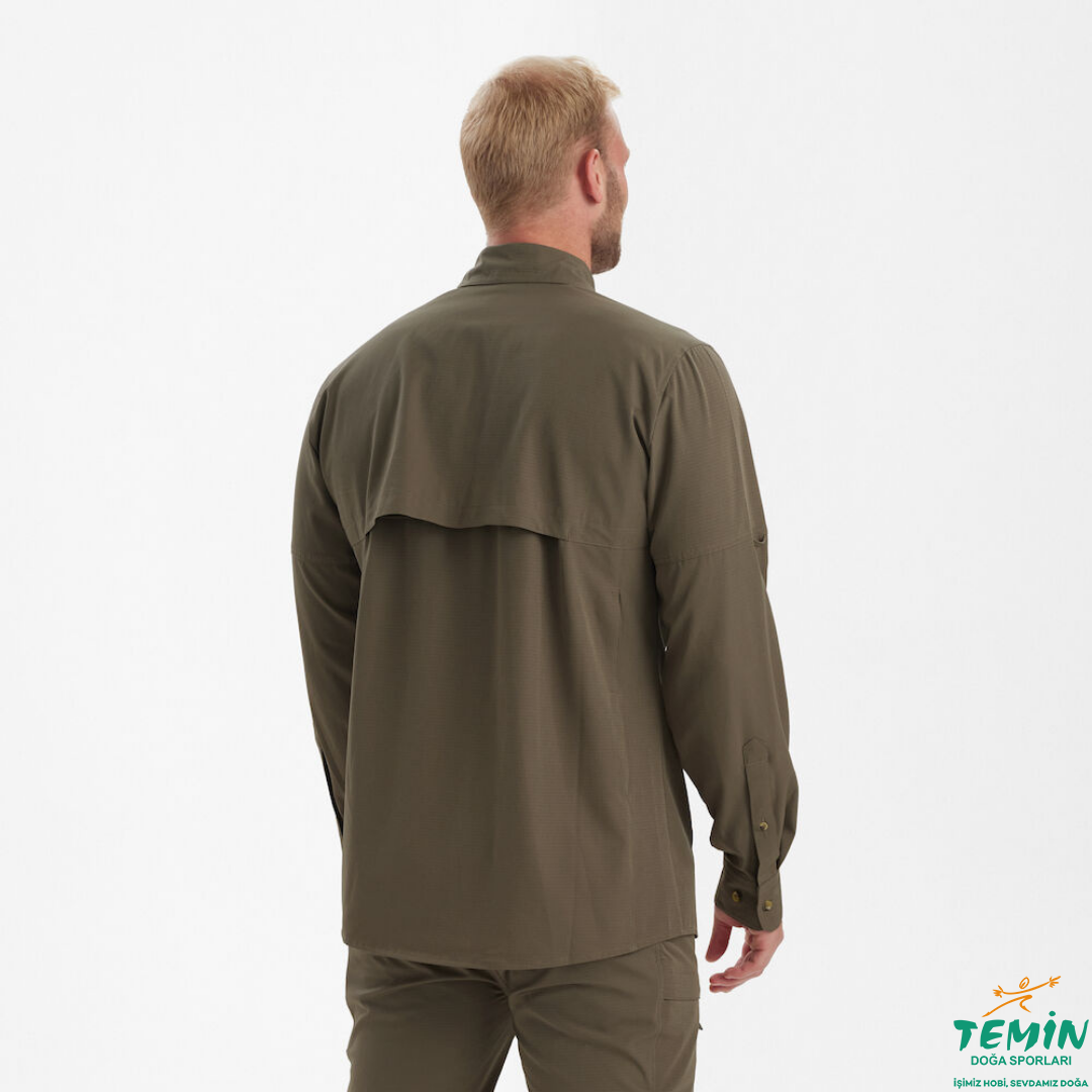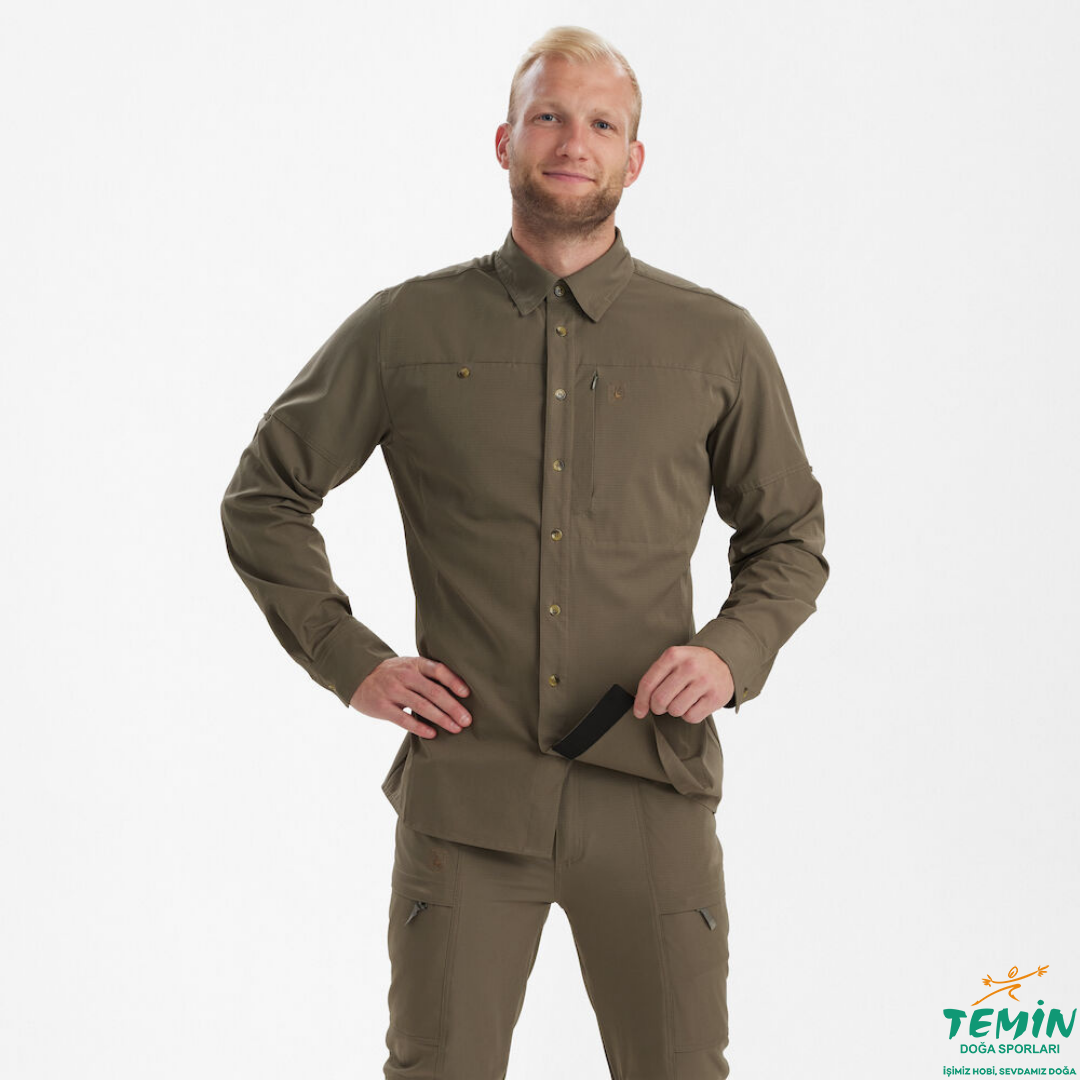 Yazın nefes alabilirlik ve konfor sunan Canopy gömlek, fileli bir havalandırma paneline sahiptir. Olağanüstü hafif, esnek, yırtılmaz malzemeden üretilen Canopy gömlek, konfor ve kısıtlanmamış hareket imkanı sunar. Pratiklik düşünülerek tasarlanan Canopy Gömlek, hareket halindeyken gözlük veya optik cihazlarınızı temizlemek için oldukça kullanışlı olan, düğmelerin arkasında, gömleğe monte halde bir temizleme bezine sahiptir. Sıcak havalarda akıllı bir giyim çözümü arayan avcılar ve açık hava maceracıları için havalandırmayı ve konforu önceliklendiren Canopy gömlek ile yaz sıcağında serin ve rahat kalın.