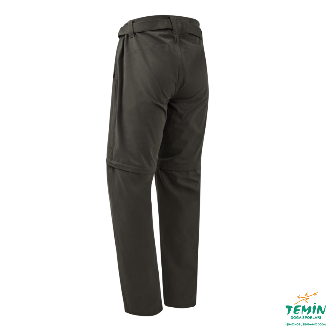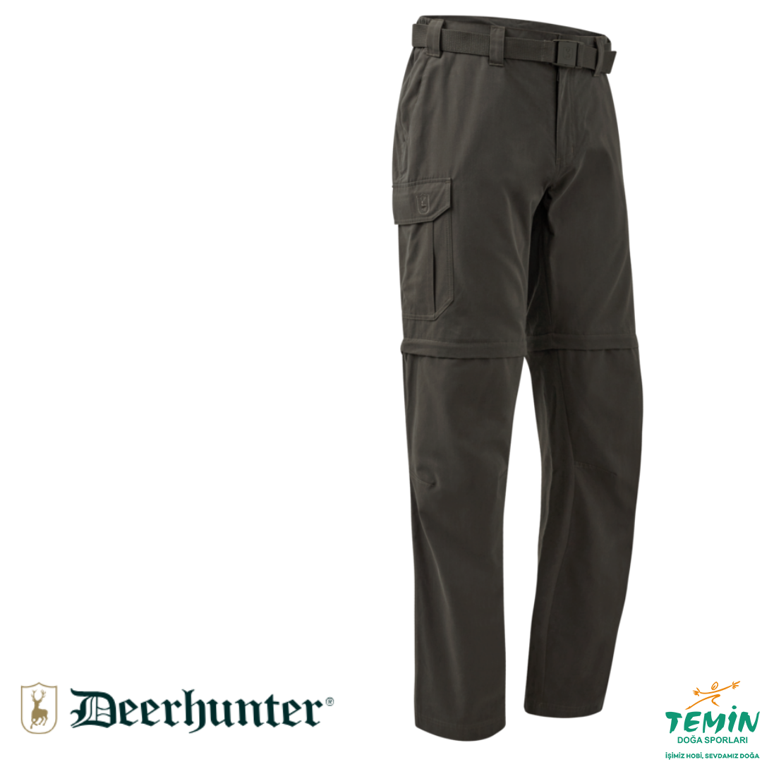 Slogen fermuarlı pantolonlar çok yönlü açık hava giyiminde iyi bir seçimdir. Bu pantolonlar, fermuar boyunca uzanan bir kumaş tabakasıyla konfor ve koruma sağlayarak sorunsuz bir şekilde şorta dönüşür. Su tutmayan BIONIC FINISH®ECO işlemi ve pratik cepler gibi çok sayıda özelliğe sahiptir. Diğer öne çıkan özellikler arasında temel ihtiyaçlarınızı güvenli bir şekilde saklamak için sağ ön cepte bulunan ekstra fermuarlı cep ve tokasında Deerhunter kalkan logosu bulunan bir kemer bulunur.