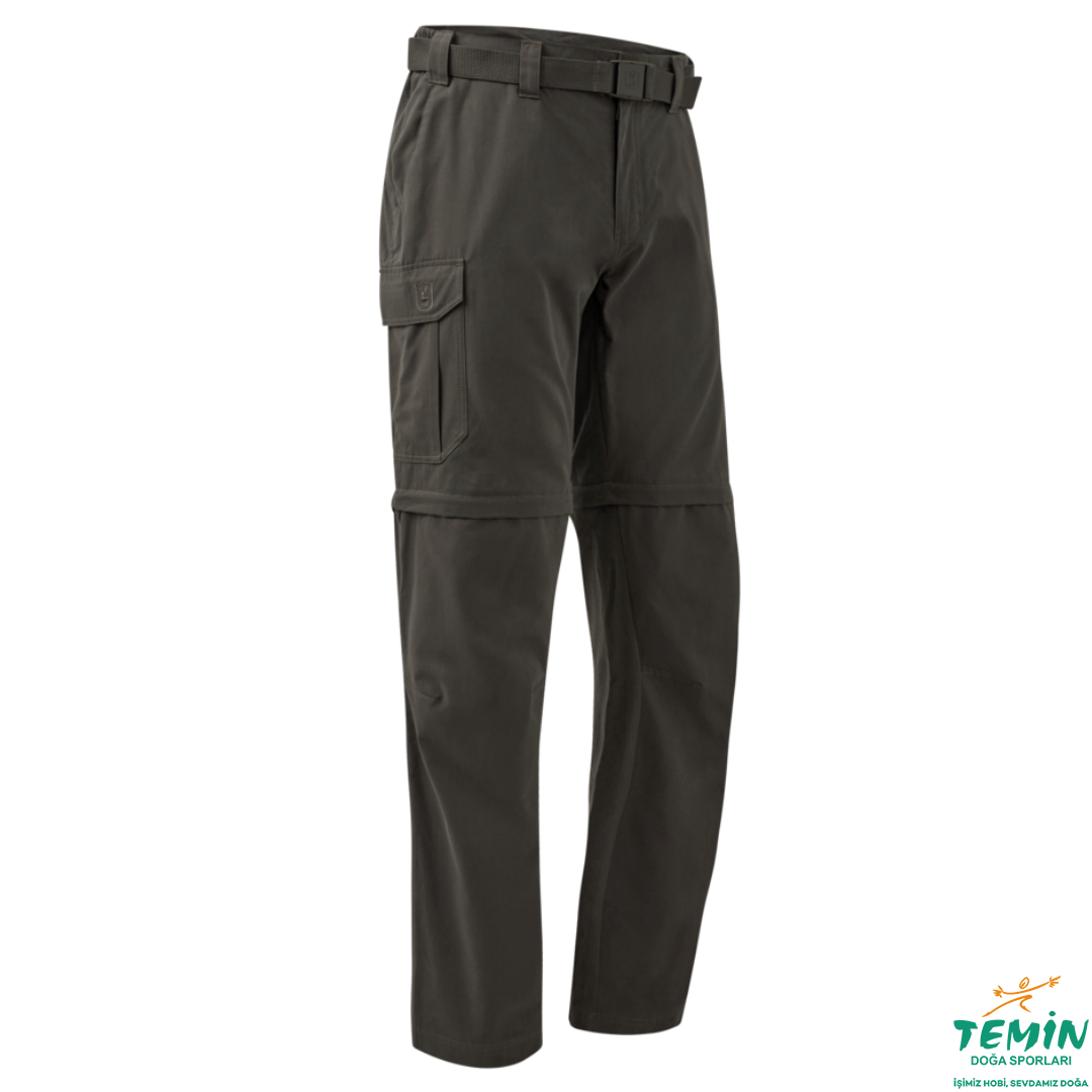 Slogen fermuarlı pantolonlar çok yönlü açık hava giyiminde iyi bir seçimdir. Bu pantolonlar, fermuar boyunca uzanan bir kumaş tabakasıyla konfor ve koruma sağlayarak sorunsuz bir şekilde şorta dönüşür. Su tutmayan BIONIC FINISH®ECO işlemi ve pratik cepler gibi çok sayıda özelliğe sahiptir. Diğer öne çıkan özellikler arasında temel ihtiyaçlarınızı güvenli bir şekilde saklamak için sağ ön cepte bulunan ekstra fermuarlı cep ve tokasında Deerhunter kalkan logosu bulunan bir kemer bulunur.