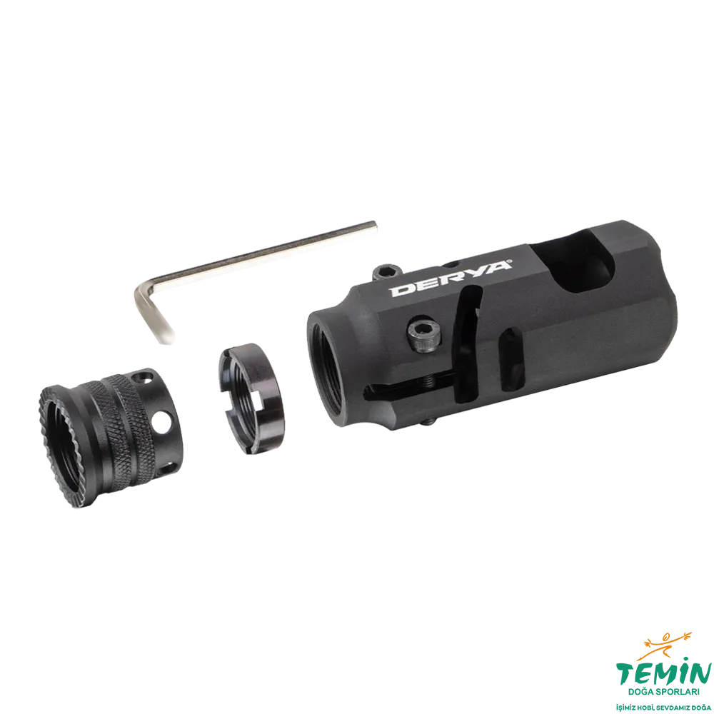Derya 12Ga. Şarjörlü tüfekler ile uyumlu olan kompansatör, kutu içeriğinde bulunan apartları ile namlu koruması söküldükten sonra namlu ucunda yer alan DIŞ paso yardımı ile montaj yapılabilmektedir.