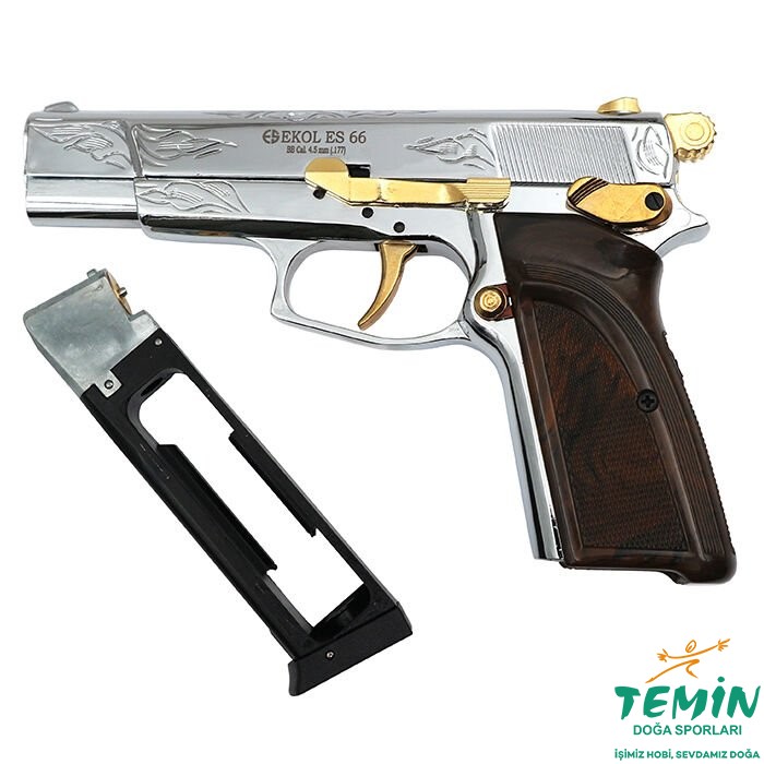 EKOL ES66 Parlak Beyaz Altın İşlemeli Havalı Tabanca