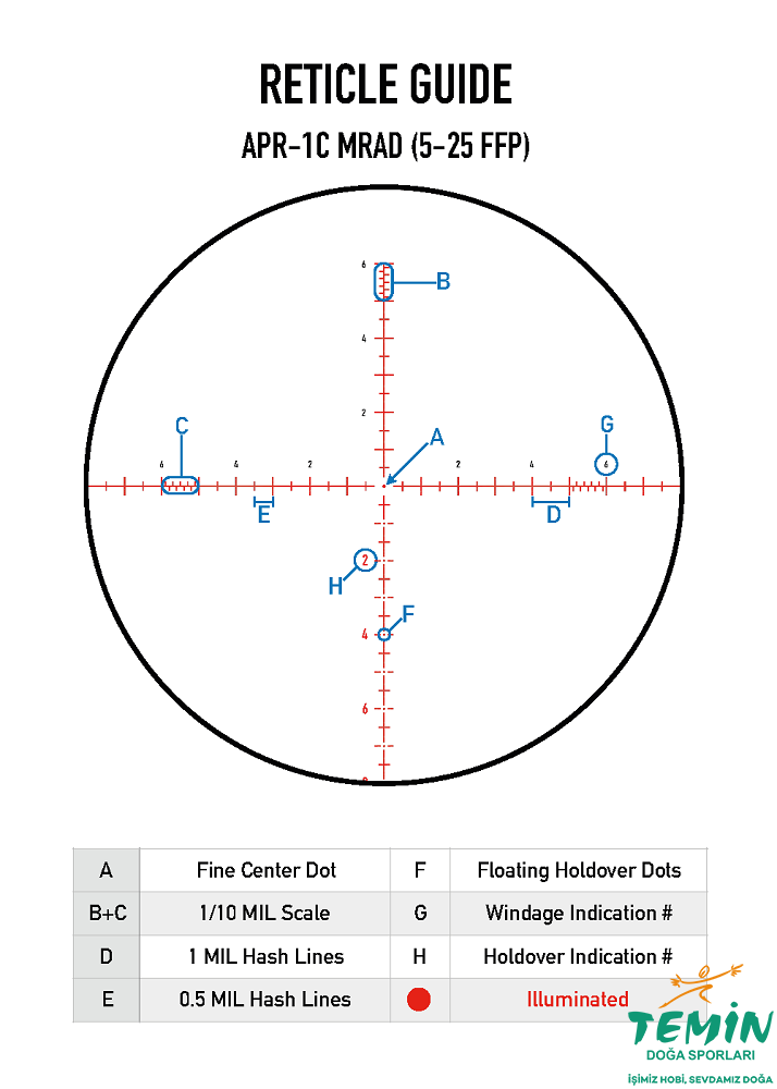 Element Optics Titan 5-25x56 FFP APR-1C MRAD Tüfek Dürbünü Teknik Özellikleri :