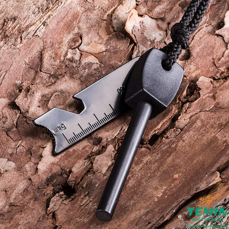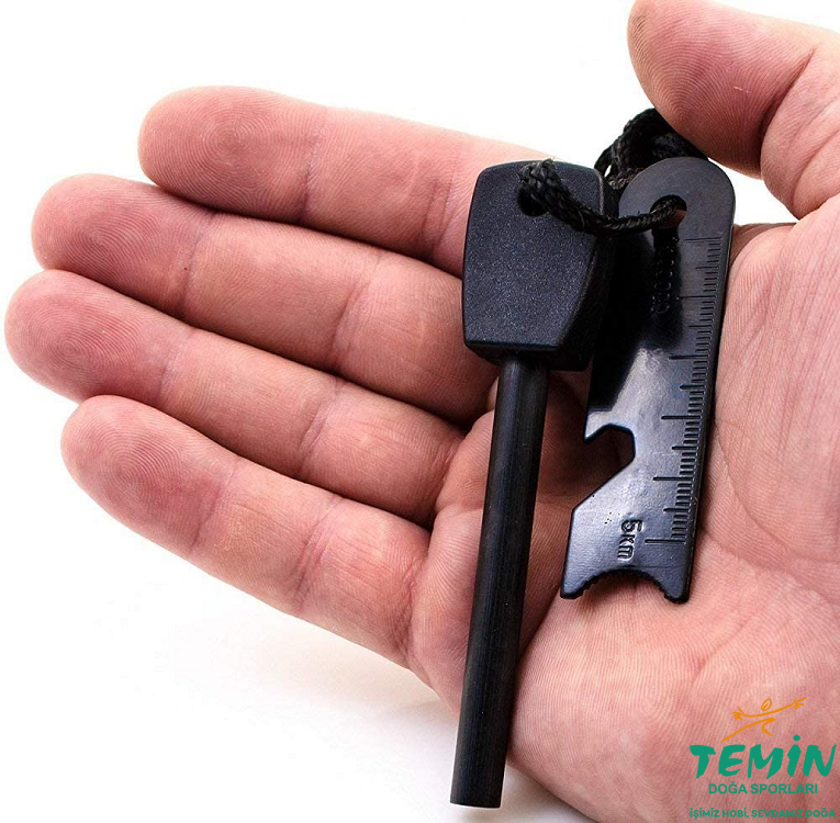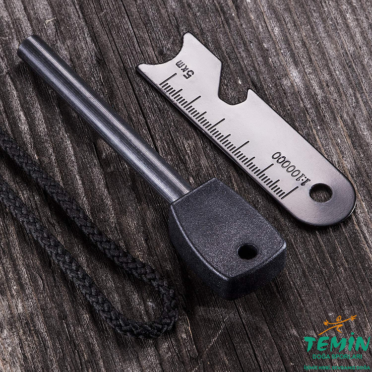 Metal aparatın, magnezyum çakmak taşı çubuğuna sürtülerek, oluşturulmuş olan kuru kavların üzerine kıvılcım düşürmek suretiyle ateş yakma malzemesi.