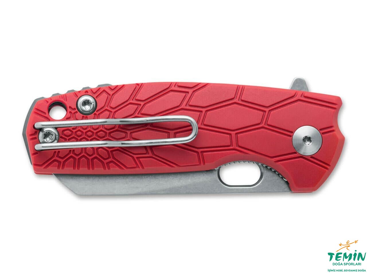 Sap, yüksek ergonomisiyle beğeni toplamaktadır. Kırmızı renkli FRN kanatların yüzeyi, kavramaya uygun hoş bir desen içeren, girintili bir yapıya kavuşturulmuş ve hem estetiğe hem de kavrayışa katkıda bulunulmuştur. Paslanmaz çelik astarlar (420) sağlamlığı pekiştirmektedir. Sağlamlığı ve hafifliği bünyesinde toplayan alüminyumdan imal edilen ara parça, anodize edilmiş ve gri rengi almıştır. Çakı parçalarının bir araya getirilmesinde paslanmaz çelik (303) cıvatalardan faydalanılmıştırSapının dip kısmında kordon deliği de bulunan hafif, dayanıklı ve şık çakı; paslanmaz çelik (302) telden imal edilen cep klipsi (yönü değiştirilebilir) sayesinde kolaylıkla taşınabilmektedir.