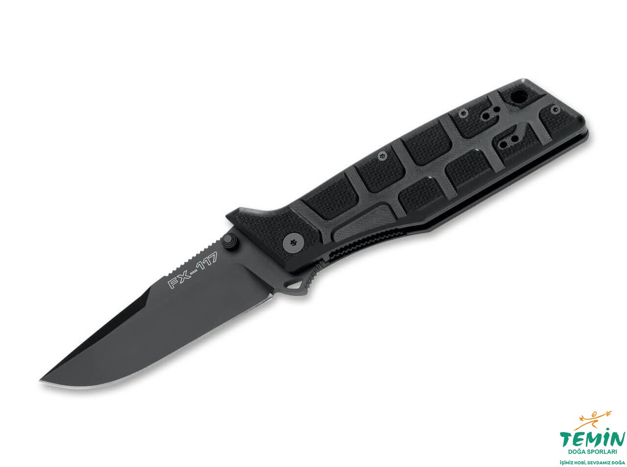 Sapının dip arka kısmında kordon deliği (lanyard hole) de bulunan ve tümüyle siyah bir çakı olan FX-117 T, yönü değiştirilebilen cep klipsi (Siyah idroglider kaplı 420J2B paslanmaz çelik) sayesinde kolaylıkla taşınabilmektedir.