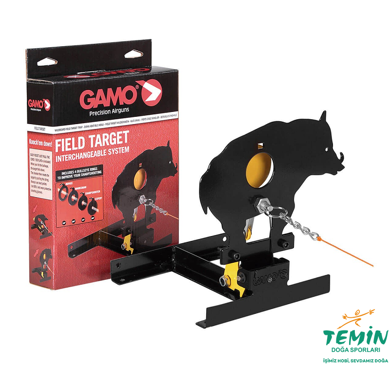 Hedefin ortasında bulunan yuvarlak bölüm vurulduğunda hedef komple arkaya yatar ve uzun ip sayesinde çekerek yeniden kurabilirsiniz.