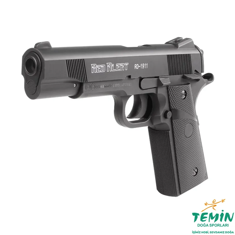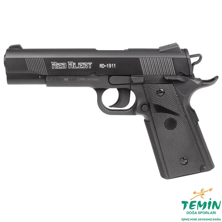 Gamo Red Alert RD-1911, 12g CO2 ile çalışan, 20 BB şarjörlü yarı otomatik 4.5 mm BB havalı tabancadır. Blowback olmadığı için daha verimli CO2 tüketimiyle uzun plinking/atış pratiği için pratik bir seçimdir.