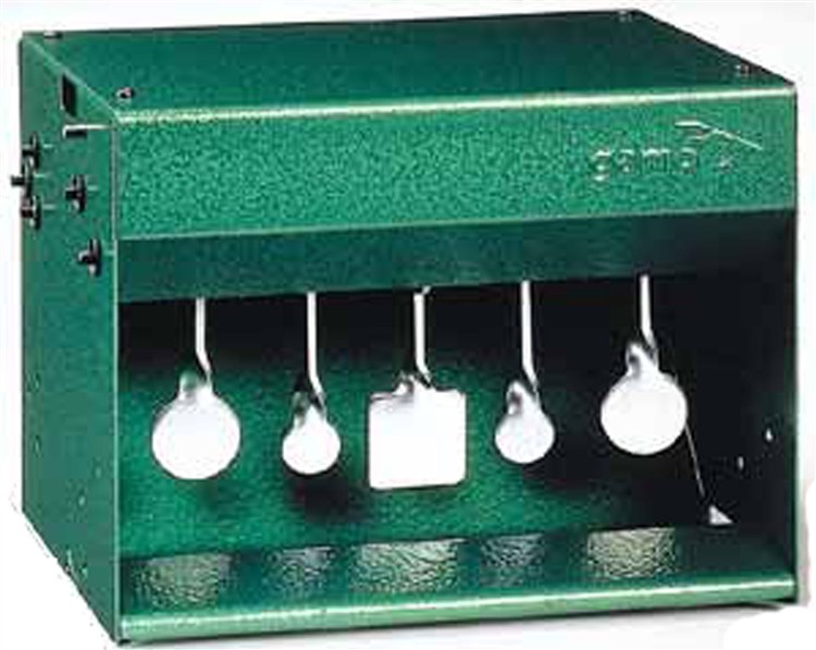 Çelik yapıya sahip olan bu model, vurulduklarında yok olan 5 ayrı sallanan hedefi içermektedir: 1" lik 2 dış disk , yanlarda 2 adet 3/4" lik disk ve ortada bir tane 11/4" kare disk bulunur.
