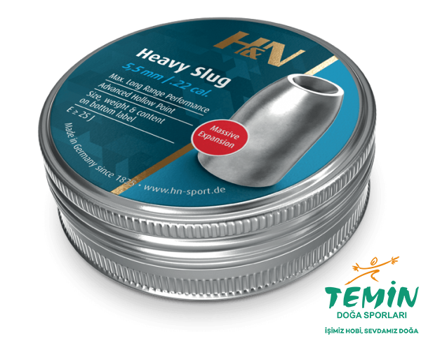 H&N Heavy Slug, kalibre .22'de ağırlık aralığını genişletir ve yüksek güçlü havalı tüfeklerle uzun menzilli avcılık ve hedef atışı için tasarlanmıştır.