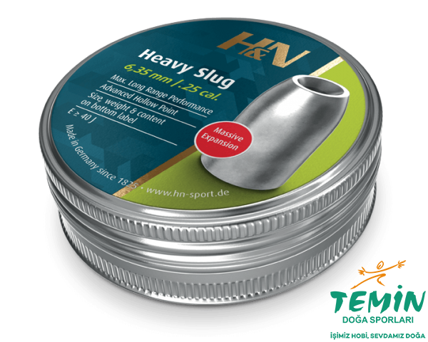 H&N Heavy Slug, kalibre .25 'de ağırlık aralığını genişletir ve yüksek güçlü havalı tüfeklerle uzun menzilli avcılık ve hedef atışı için tasarlanmıştır.