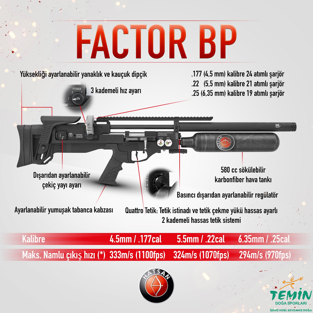 Hatsan Factor BP FDE QE PCP Havalı Tüfek Teknik Özellikleri :
