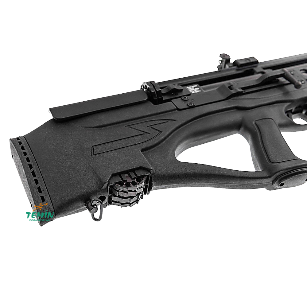 Uzun namlu ve büyük hava tüpüne rağmen bullpup tasarım sayesinde tüfek; araç içinde, sahada, poligonda daha rahat taşınabilir ve nişan alınabilir hale geliyor.