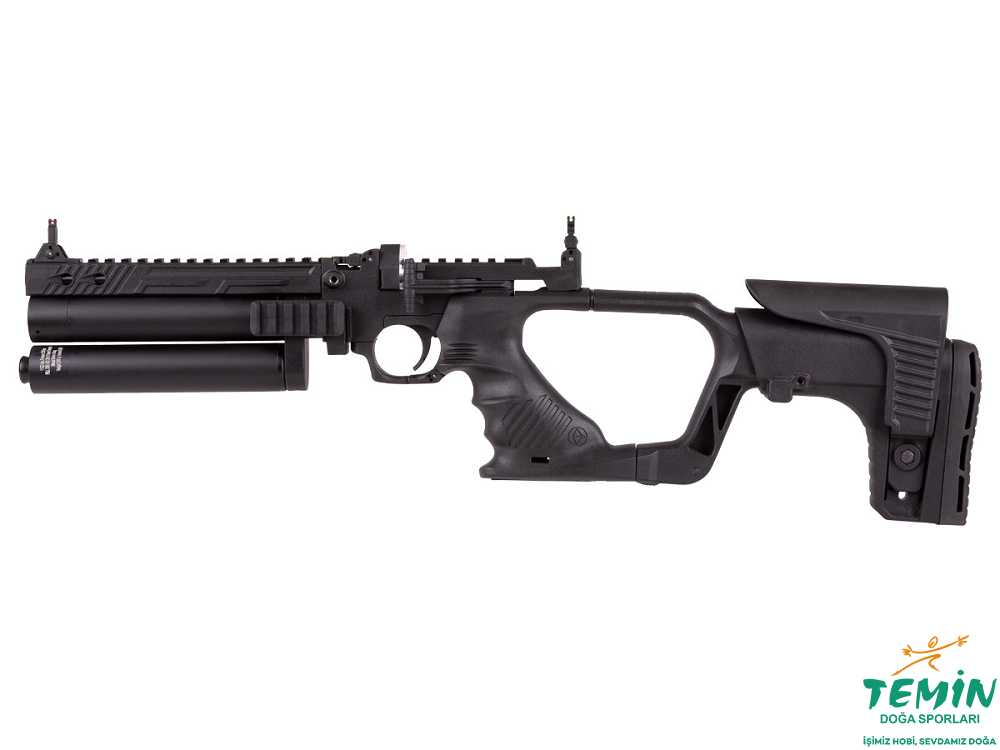 Standart bir havalı tabancadan farklı olarak, çıkarılabilir bir sentetik dipçik ile birlikte geldiği için havalı tüfeğe kolayca dönüşebilir.