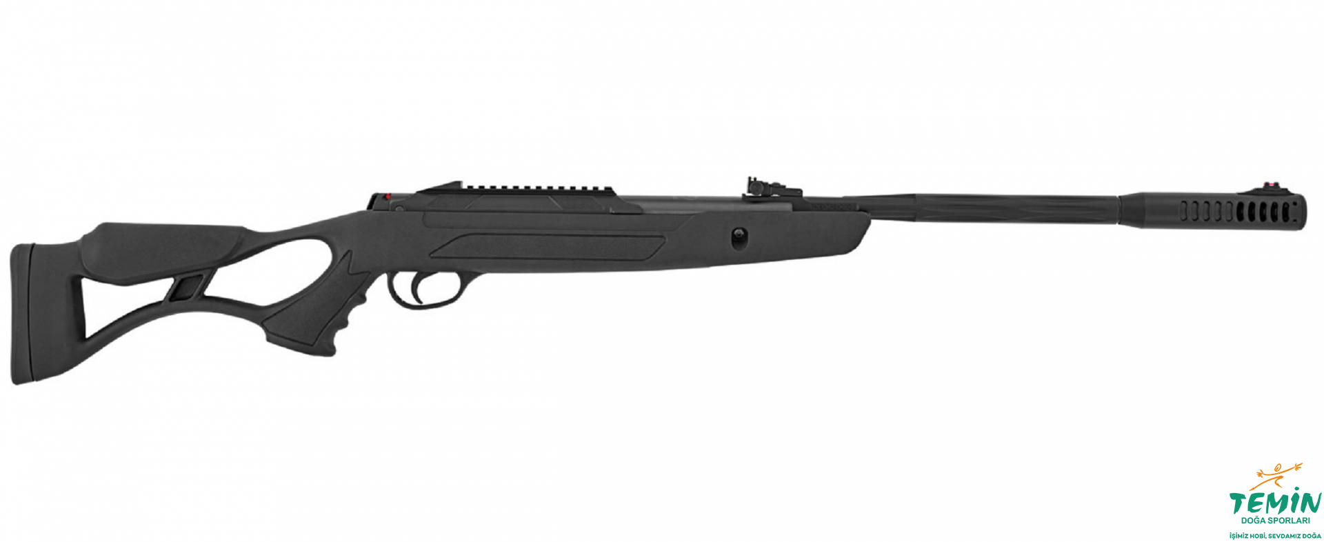 Delikli, yanaklı, taktik stil plastik kundaklı, kırma namlu ve tek atış sistemli havalı tüfeğimiz saçma ve atış kağıdı hediyelidir.
