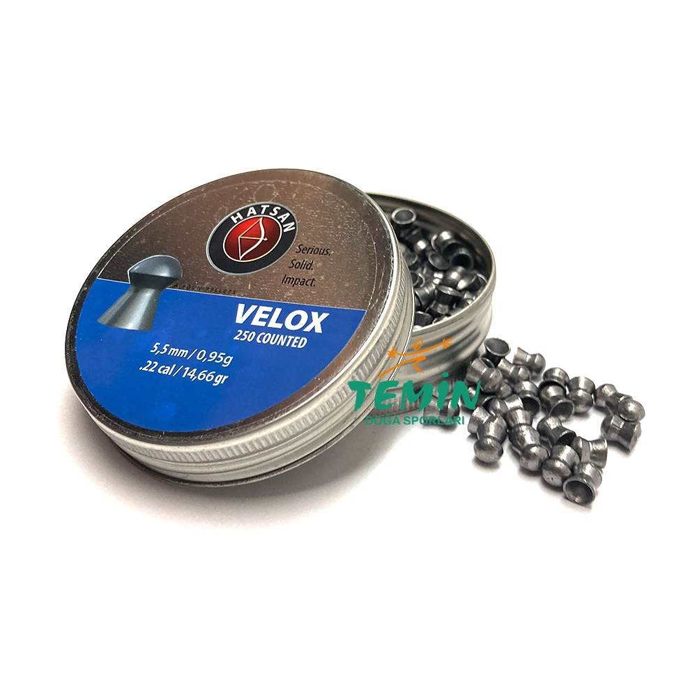 Hatsan Velox 5.5 mm saçma, 14,66 grain (0,95 g) ağırlığıyla orta-ağır sınıfta; güçlü havalı tüfeklerde enerji/stabilite dengesini hedefleyen kullanıcılar için iyi bir seçenek olarak konumlanır.