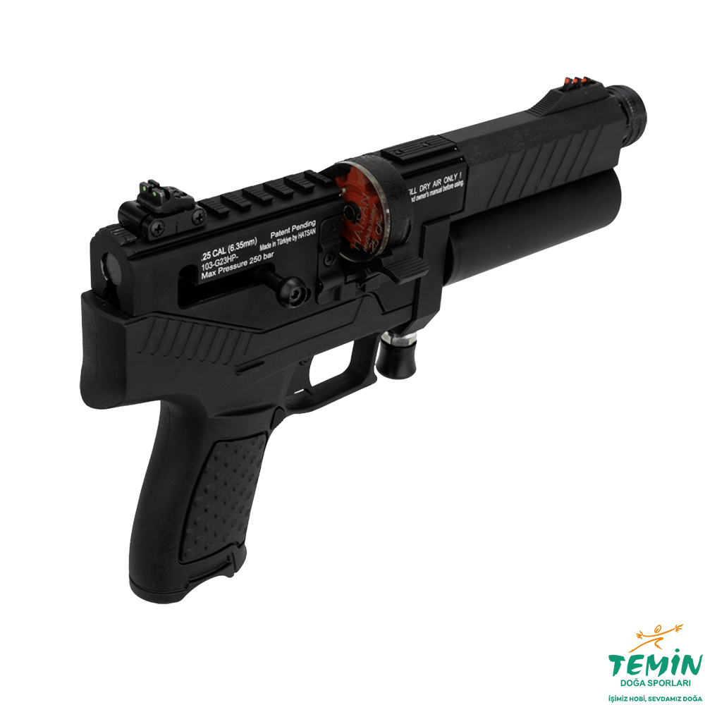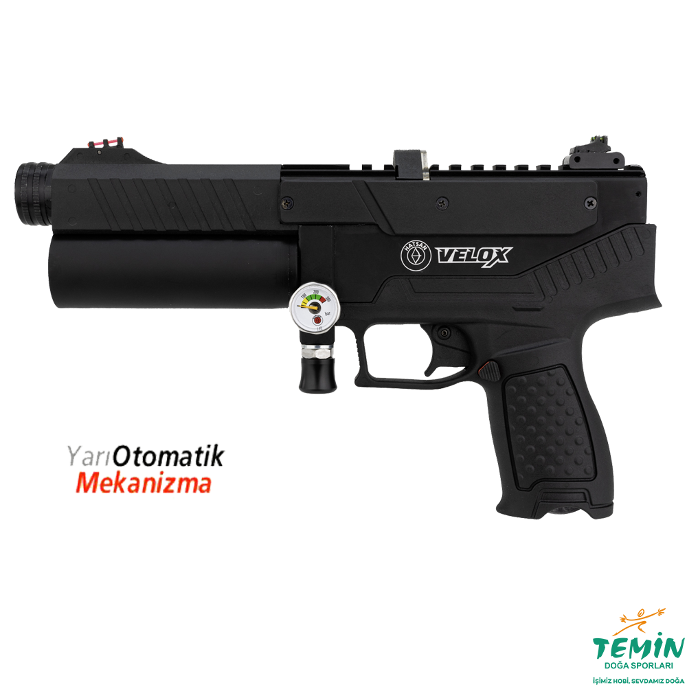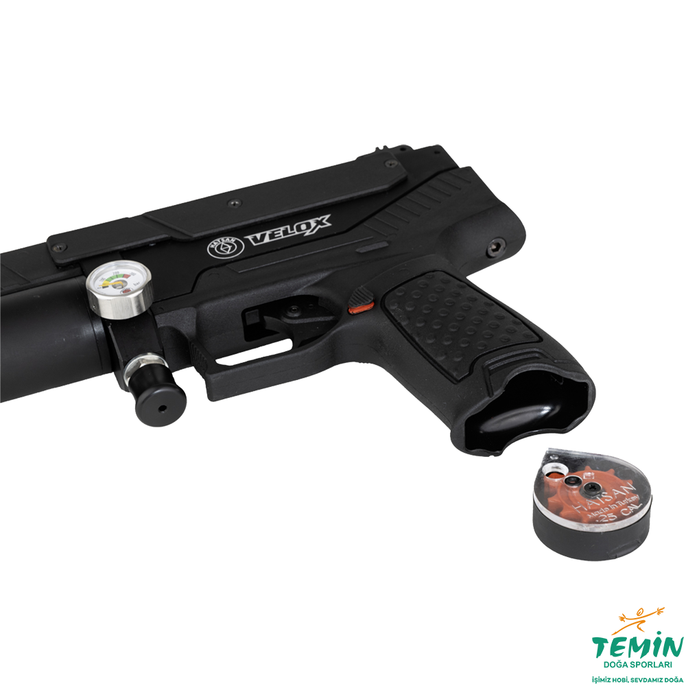 Son teknolojiyle donatılmış Hatsan VELOX yarı otomatik PCP tabanca, atış deneyimini bir üst seviyeye taşıyor.