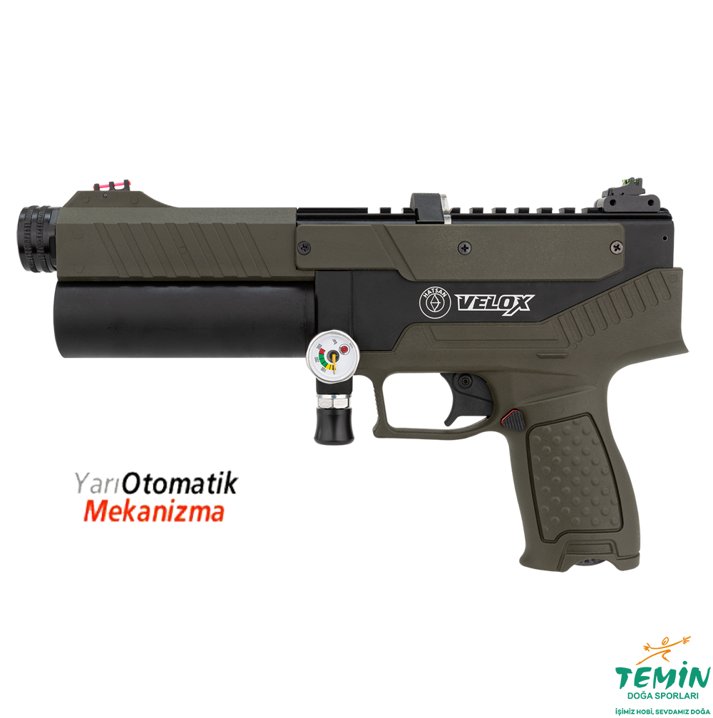 Son teknolojiyle donatılmış Hatsan VELOX yarı otomatik PCP tabanca, atış deneyimini bir üst seviyeye taşıyor.
