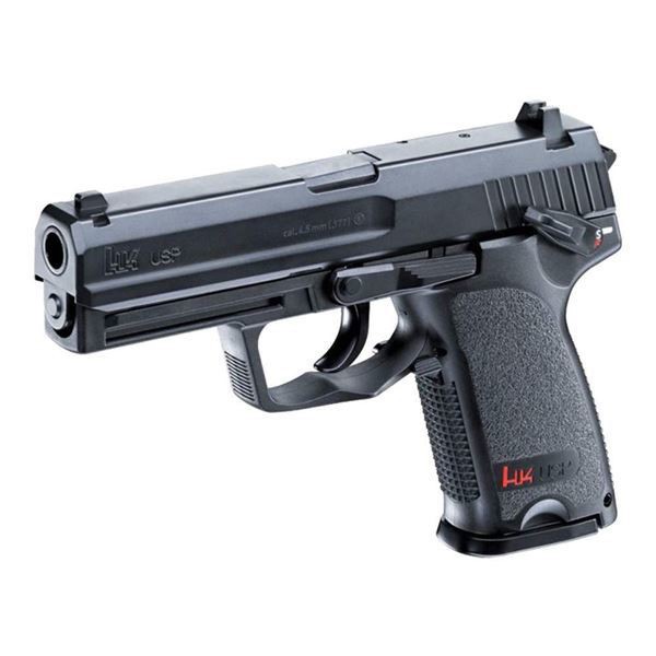 Heckler & Koch USP 4.5mm siyah havalı tabanca; 12 g CO2 sistemi, 22 atış kapasiteli şarjörü, ayarlanabilir nişangahı ve çift hareketli tetik yapısıyla dikkat çeken bir modeldir.