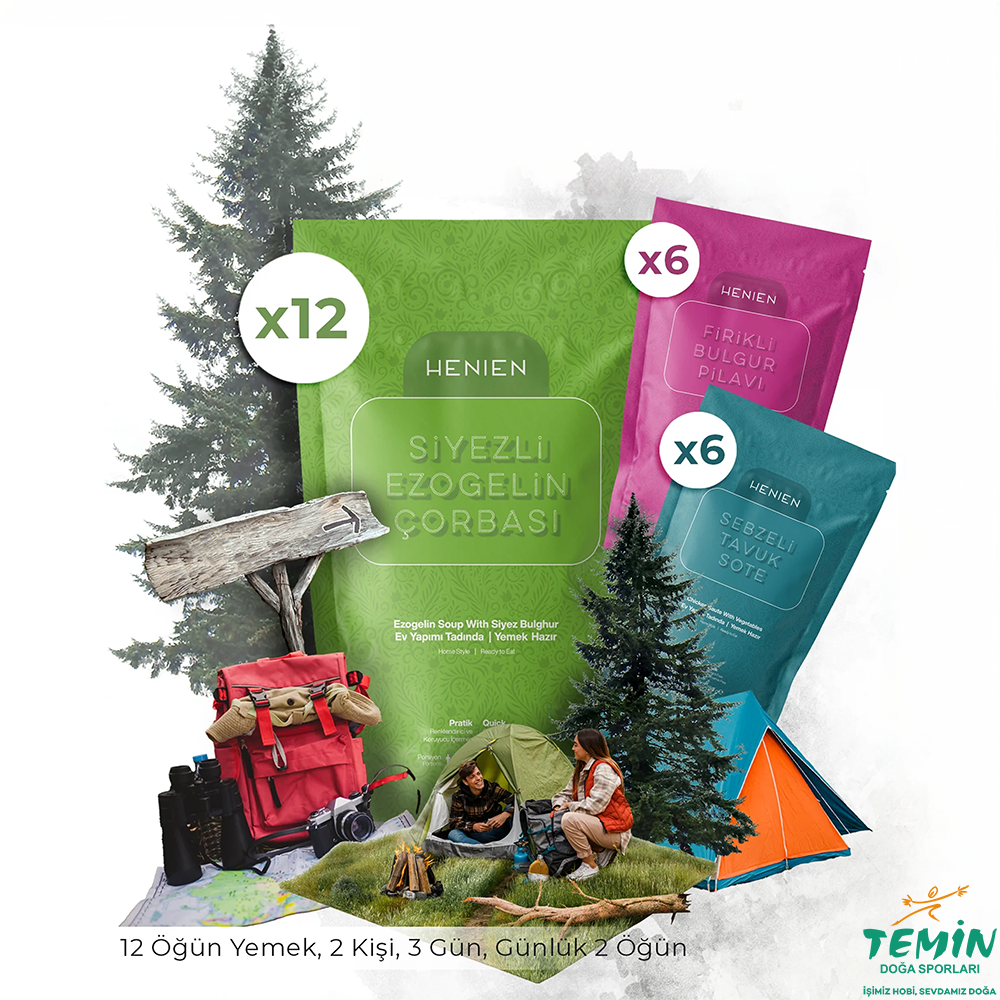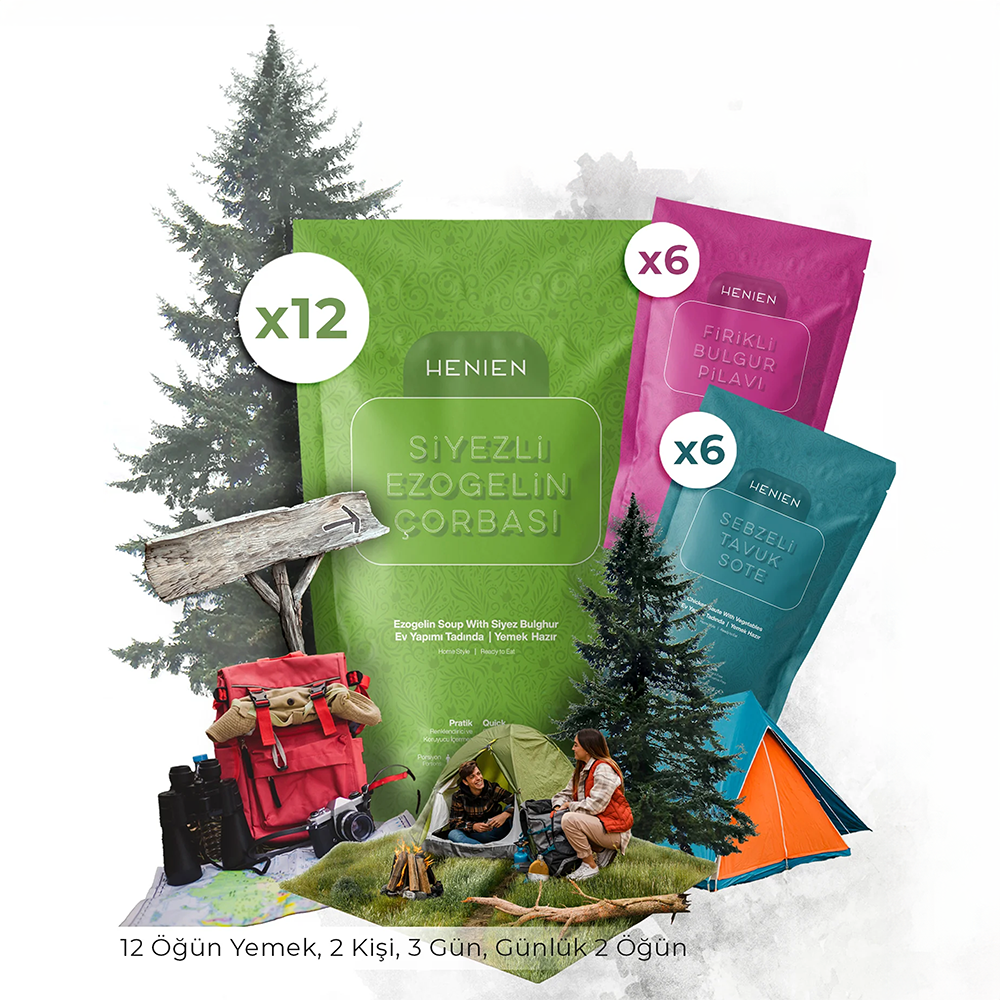 Kamplarınızda doğada size eşlik edecek doğal, hazır, pratik, helal, sağlıklı, doyurucu ve lezzetli Henien yemeklerini 2 kişi için 3 günlük kamplarınızda günde 2 öğün olacak şekilde sizler için paket haline getirdik.