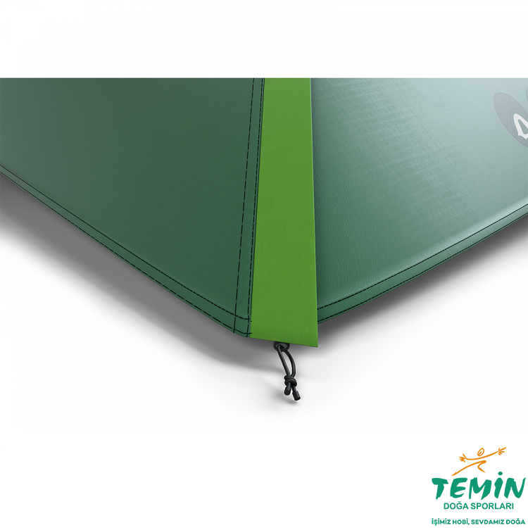 Çadırın dış kısmı 185T Polyester ile 4000 mm/cm2 PU koruma sağlar ve dikişleri bantlanmıştır.