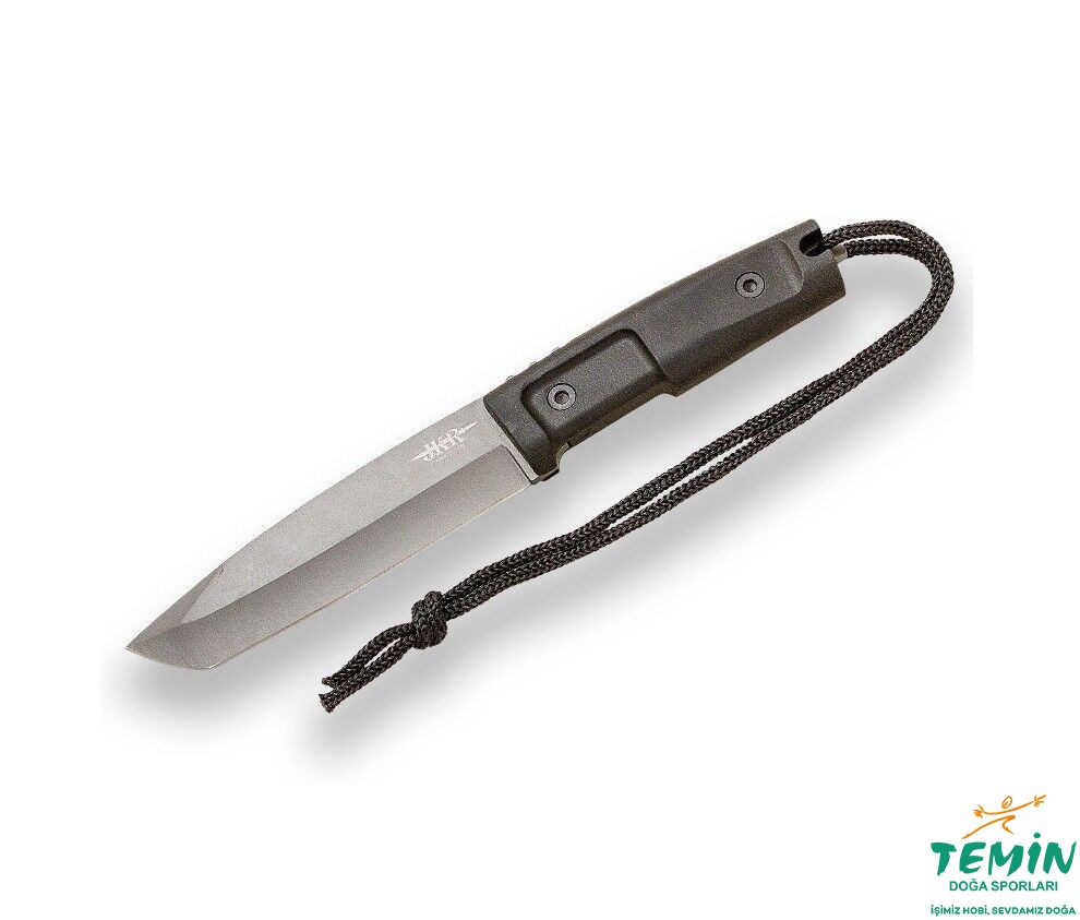Kauçuk saplı hayatta kalma bıçağı. Titanyum namlu kaplamalı . Naylon kılıf ile birlikte verilir.