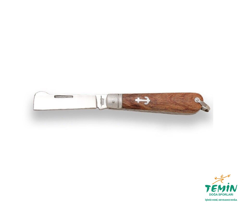 Yuvarlatılmış hatlara sahip ve dibe doğru kalınlaşan sap, iyi ve konforlu kavranmaktadır. Gül ağacı sap malzemesi üzerinde bir çıpa resmi oluşturulan çakının, eski tip (Nal şeklindeki dilsiz toka ya da kordon askısı denebilir.), geniş ve kullanışlı kordon deliği (lanyard hole) de bulunmaktadır.
