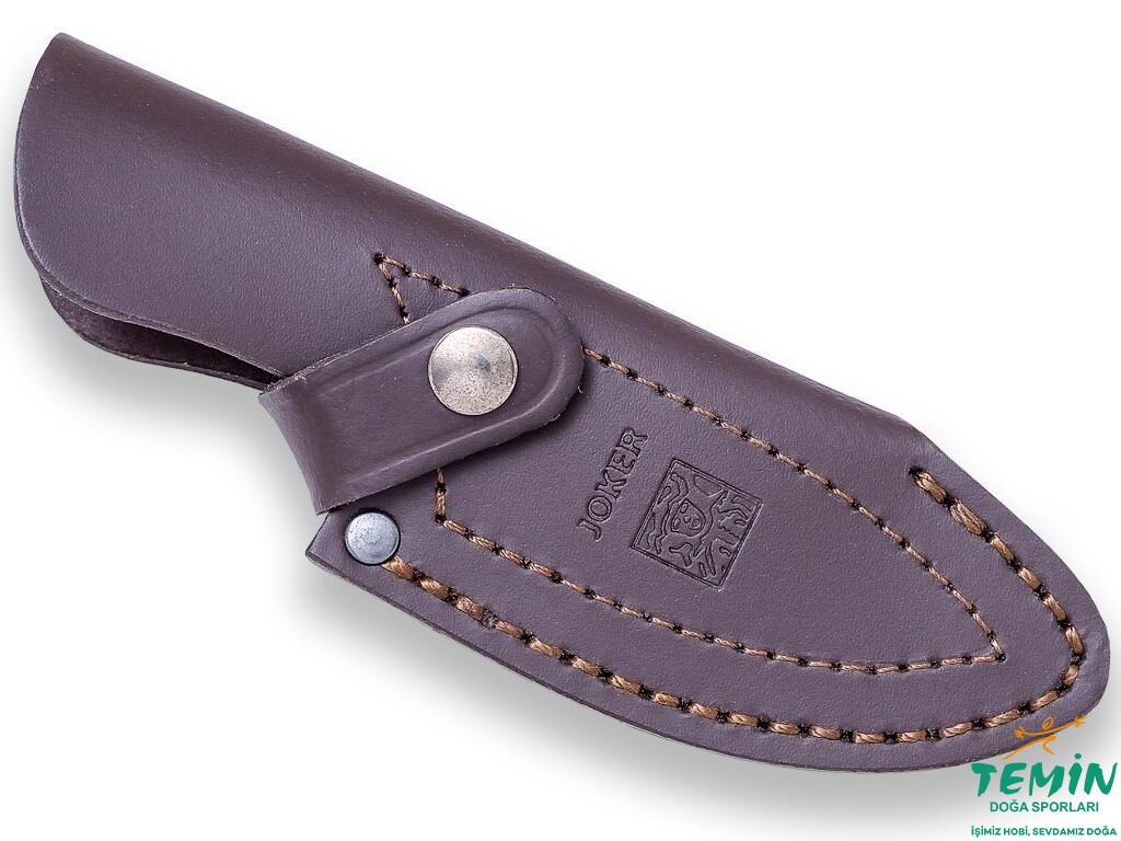 Tam kuyruklu (full tang) sağlam bir bıçak olan Joker CO104, ön yüzündeki işaret parmağı oluğu ve onun ardından gelen içbükey kavisle, sağlam ve konforlu kavranabilmektedir. Zeytin ağacı sap malzemesinin yerine takılmasında karartılmış cıvatalardan faydalanılmıştır. Zeytin, bıçak saplarında açık renk ahşap talebini karşılayan, gri-sarı rengi ve güçlü bir damar deseni bulunan, önemli bir malzemedir. Akdeniz ülkeleri imalatçılarının vazgeçilmezi zeytin ağacı sap malzemesi; sert, yoğun ve rutubete dayanıklıdır. Sapın şekillendirilmesiyle elde edilen arka koruyucu tırnak (rear quillon) üzerinde kordon deliği (lanyard hole) açılmıştır. Sap malzemesinden azade kılınan bu kısmı, darbe vurmak için de kullanabilirsiniz. Boş bırakılmayan kordon deliğine deri bir bağcık düğümlenmiştir. Bunu bileğinizden geçirerek elinizin namluya ulaşmasını zorlaştırabilir ve bıçak elinizden kurtulsa bile sizden uzaklaşmamasını sağlayabilirsiniz.