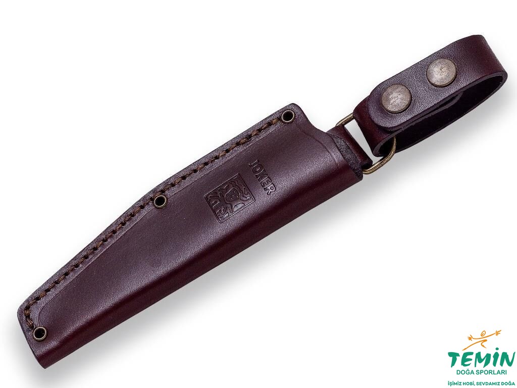 Joker CO120 Bushcrafter’da, siyah astarlı, zeytin ağacı sap malzemesi bulunmaktadır. Zeytin, bıçak saplarında açık renk ahşap talebini karşılayan, gri-sarı rengi ve güçlü bir damar deseni bulunan, önemli bir malzemedir. Akdeniz ülkeleri imalatçılarının vazgeçilmezi zeytin ağacı sap malzemesi; sert, yoğun ve rutubete dayanıklıdır. Sapın biçimi de merkez hattan abartılı biçimde ayrı düşmeden hem itiş hem de çekiş hareketlerini destekleyecek niteliktedir. Sap malzemesinin kuyruğa sabitlenmesinde pirinç pimlerden faydalanılmıştır.