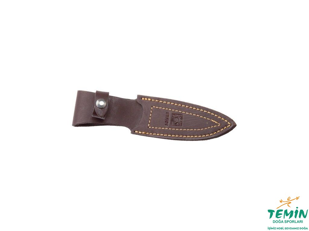 Orijini Albacete olan bu şık ve işlevsel bıçak, birinci sınıf deriden (kahverengi) imal edilen ve içine çıtçıtla sabitlendiği kılıfıyla sunulmaktadır.