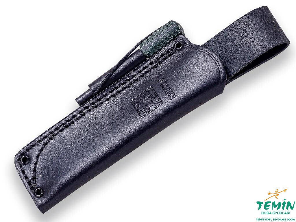 Tam kuyruklu (full tang) sağlam bir bıçak olan Joker CV116-P, siyah astarlı, hâki renkte kanaviçe mikarta (canvas micarta) sap malzemesine sahiptir. Kanaviçe mikarta, keten (linen) mikartaya göre daha geniş gözenekli olup daha kaba ve kavranabilir yapıdadır. Sağlam bir sap malzemesi olan Mikarta hem suya hem de ateşe dayanıklıdır ve ıslak koşullarda bile iyi kavranabilmektedir. Üzerinde üç boyutlu çalışılan ve ön kısmının ortası ovalleşen sapa, dalgalı bir form kazandırılmıştır. Yani sap malzemesinin başlangıç, bitiş ve orta kısmı kalındır. Bazı üreticilerin, gitarın bırakacağı izden esinlenerek, ‘‘gitar biçimi’’ olarak tarif ettiği bu dalgalı yapı; konforlu ve sağlam bir kavrayışa olanak tanımaktadır. Sap malzemesinin kuyruğa sabitlenmesinde pimlerden faydalanılmıştır. Sapın şekillendirilmesiyle elde edilen arka koruyucu tırnak (rear quillon) üzerinde kordon deliği açılmıştır. Sap malzemesinden azade kılınan bu kısmı, darbe vurmak için de kullanabilirsiniz.