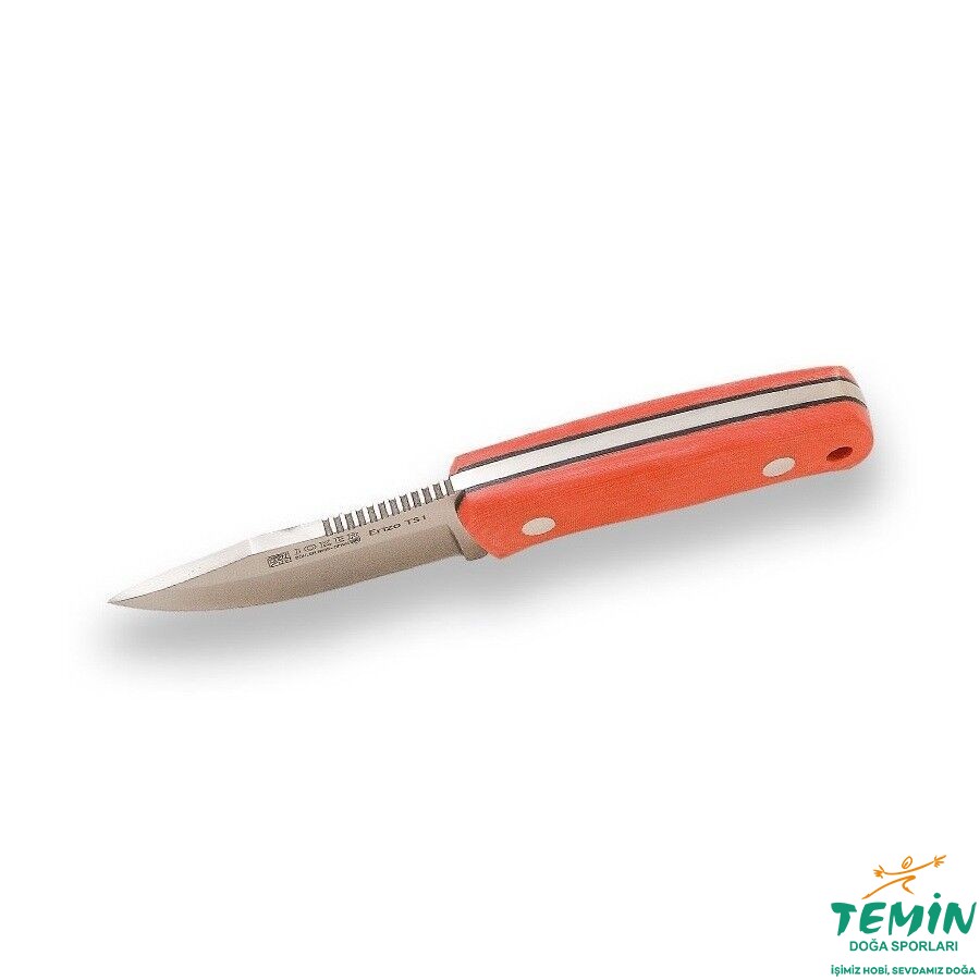 Orta hatta yakın (saber) ve düz (flat) açılan ağzıyla sağlam ve keskin bıçağın çeliği, Böhler N695’tir. Bu çelik, paslanmaz çelikler içinde saygın bir yeri olan 440C’nin Böhler tarafından üretilen versiyonudur. 33 mm enindeki namlunun et kalınlığı 4 mm’dir. Bu bıçağın dayanıklılığı, tam kuyruk (full tang) yapısıyla perçinlenmiştir. Uç noktasıyla buluşmak için içbükey biçimde daralan sırt, düz devam eder ve ardından açılı bir doğru ile uç noktasını yakalar. Böylelikle hem başparmak yokuşu (thumb ramp) oluşturulmuş hem sırtta düz çizgiden oluşan bir kısım elde edilmiş hem de bıçağa, saplanma yetisine sahip sivri uç (clip point) yapısı kazandırılmıştır. Bunun sonucunda daha da hafifletilen bıçakta; namluyla sap arasında enine bir kademe oluşmuştur. Sap, önde de arkada da namludan daha geridedir. Özellikle ön kısımdaki bu geri duruş, parmakları güvende tutmakta ve keskin kenarın kullanımını engellemeyecek-zorlaştırmayacak bir yapı ortaya koymaktadır. Başparmak yokuşu üzerindeki kavramaya yardımcı sıralı çentikler, hâkimiyeti artırmaktadır.