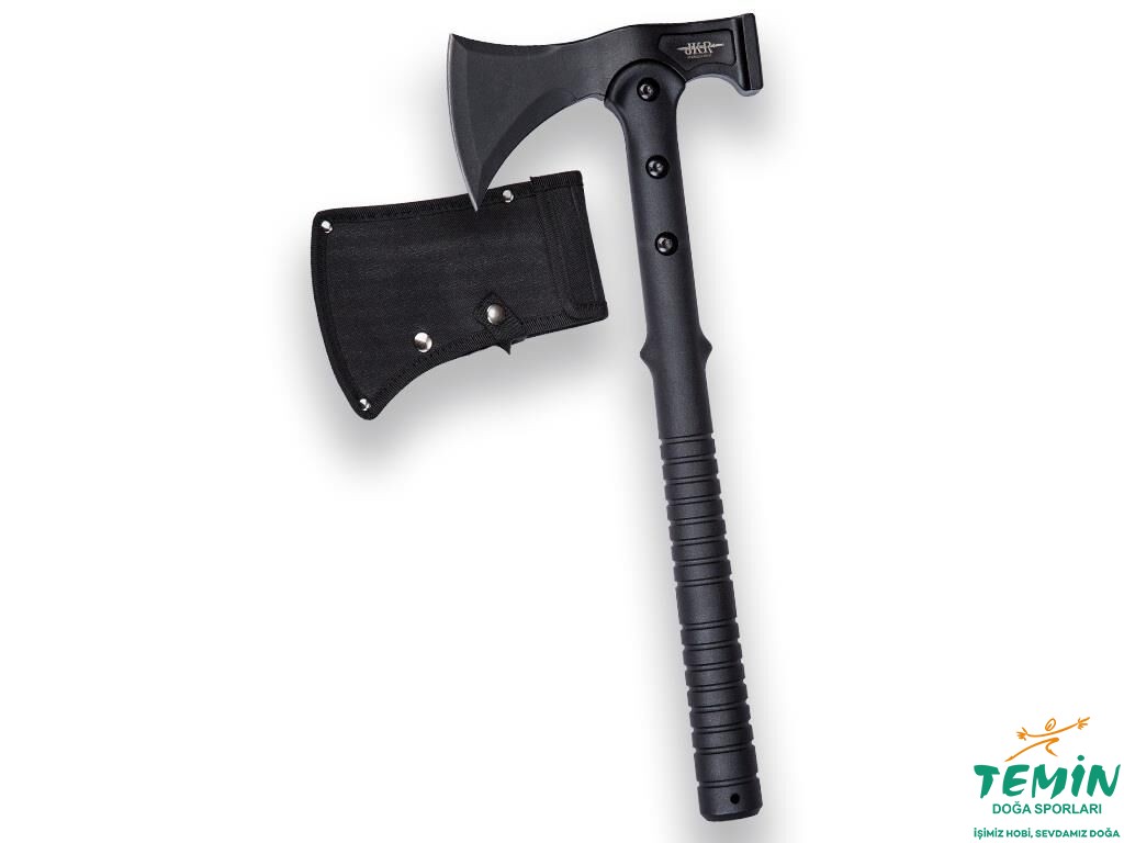 Baltanın 155 mm genişliğe, 85 mm uzunluğunda keskin kenara sahip kafası, paslanmaz çelikten oluşturulmuştur ve siyah renkte kaplanmıştır. Çelik kalınlığı, en kalın yerde 22 mm’yi bulmaktadır. Dar ve düz yapılan ağız açımı, baltayı dayanıklı kılmaktadır. Saplanabilme kabiliyeti yükseltilmiş bir baltadır. Balta ağzının alt kısmının arkası, içbükey bir kıvrımla geriye dönmektedir ve bu kısım inceltilmiştir. Üst kısımda da benzer bir yapı söz konusudur. Balta ağzının aksi tarafında, çekiç olarak kullanılmaya uygun, küt bir kısım bulunmaktadır.