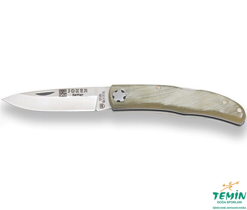 Serinin küçük boydaki seçkin versiyonu Joker NA111’de kullanılan tam boy sap malzemesi, boğa boynuzudur. Şık, sağlam ve doğal malzeme olan boğa boynuzu; benzersiz dokusu ve pürüzsüz yüzeyiyle, iyi kavramaya da yardımcıdır. Sap malzemesinin yerine takılmasında pirinç pimlerden faydalanılmıştır. Çelik balçağın yokluğunda genişçe tutulan pivot bağlantı elemanı, dekoratif güzelliktedir. Paslanmaz çelik astarlar ve ara parçalar, çakının sağlamlığını pekiştirmektedir. Astarların kenarlarına işleme yapılması da hem kavramaya hem de çakının estetiğine katkıda bulunmaktadır.