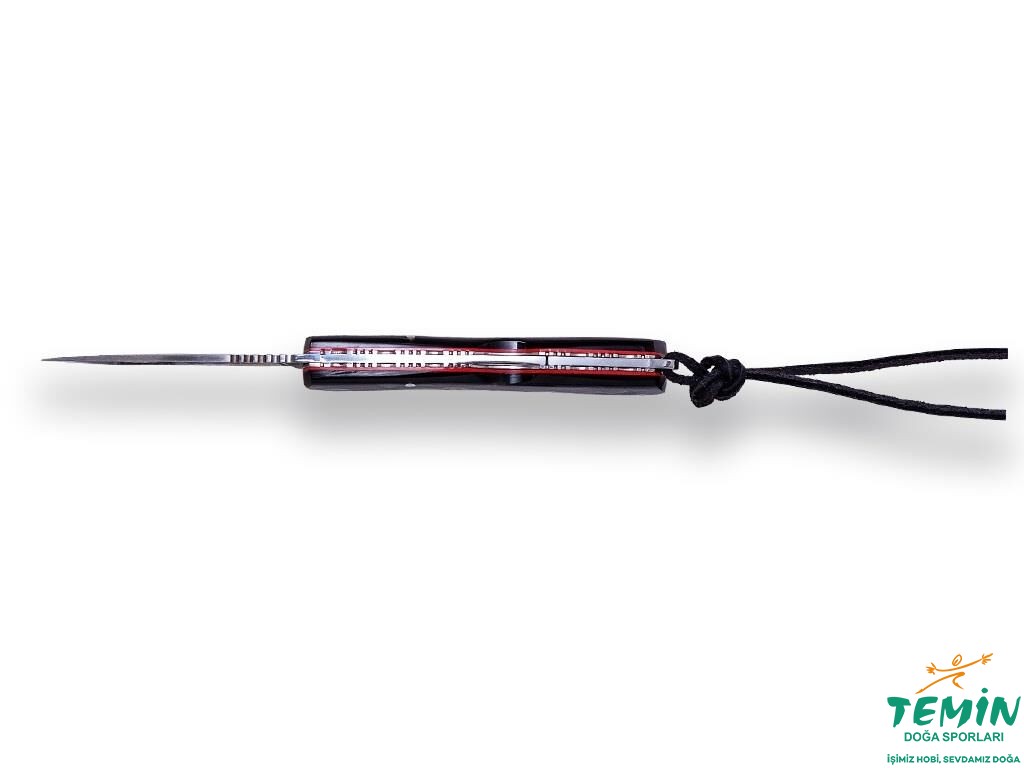 Üst versiyonu temsil eden izlediğiniz çakı, tam boy, bufalo boynuzu sap malzemesine sahiptir. Çelik astarlarla sap malzemesinin arasında, yalıtım sağlayan, kırmızı renkte fiber astarlar da bulunmaktadır. Sap malzemesinin yerine takılmasında pimlerden faydalanılmıştır. Sap dibine en yakın bağlantı elemanı olarak boru pim kullanılmasıyla, sağlam bir kordon deliği (lanyard hole) de elde edilmiştir. Sapın ön yüzünün ortasına yerleştirilen mozaik pim, çakının seçkinliğine yapılan bir vurgudur. Çelik balçağın kullanılmadığı çakıda genişçe tutulan pivot bağlantı elemanı, işlevsel ve estetiktir. Güvenilir arkadan kilide (lock back) sahip çakıdaki paslanmaz çelik astarlar ve ara parçalar, çakının sağlamlığını pekiştirmektedir. Astarların kenarlarına işleme yapılması da hem kavramaya hem de çakının estetiğine katkıda bulunmaktadır.